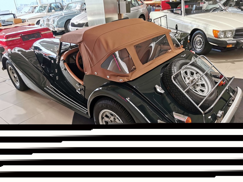 Concours gerestaureerde Morgan Plus 8 roadster. Nieuwe racing green schildering met nieuwe softtop, nieuwe tonneau, nieuwe tapijten en compleet nieuw interieur. Alles in ons eigen atelier hersteld. Opties = speciale serie 'Louis Vuitton' met originele Louis Vuitton valies en motorkapbescherming.