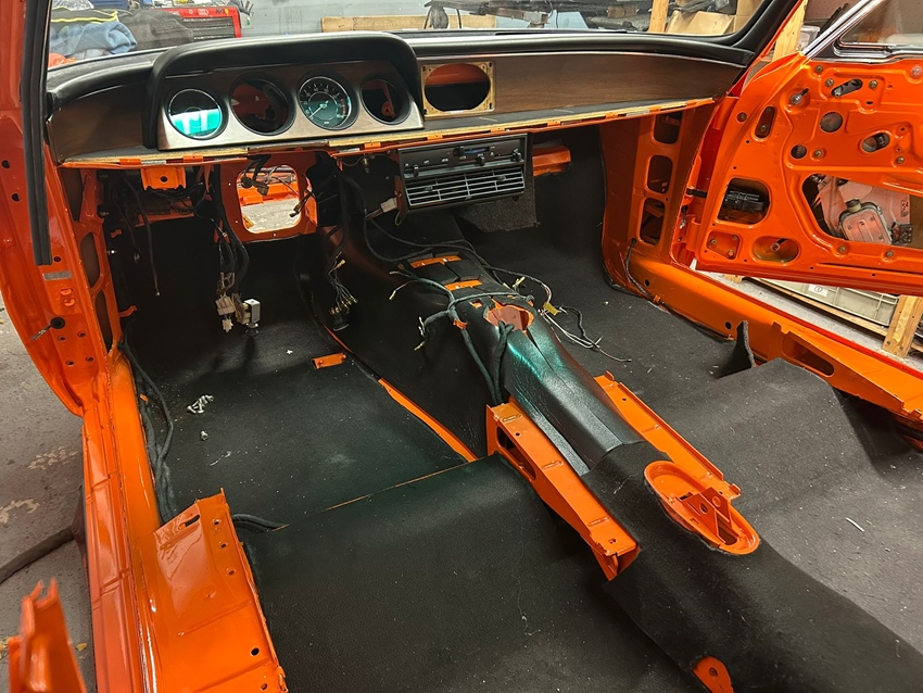 Due to time and capacity constraints, Scuderia Sportiva Colonia was commissioned to complete the vehicle. The current photos are evidence of this. In addition to the original soundproofing mats, Scuderia also installed additional insulation fleece for noise reduction. The plastic-coated body trim strips are currently being polished to a high gloss.