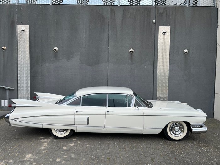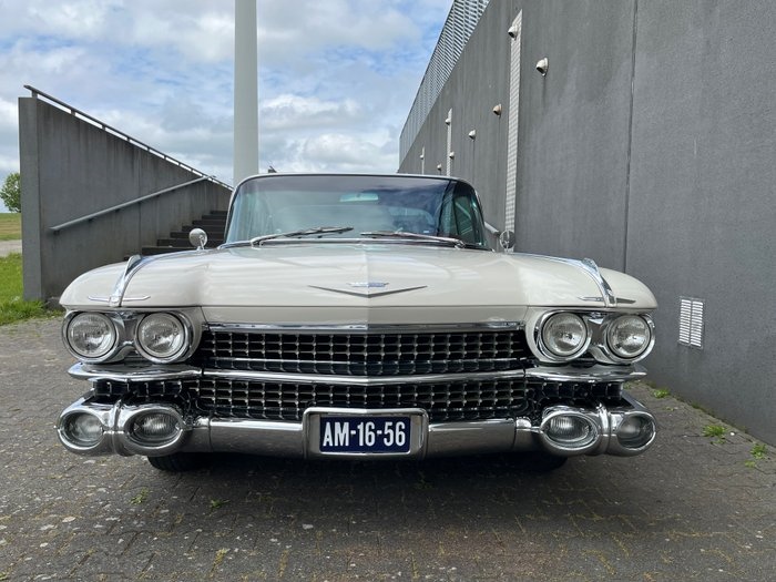 Een tot in de kleinste details goed gerestaureerde Cadillac Fleetwood Sixty Special uit 1959. De favoriete auto van Elvis Presley maar ook Queen Elizabeth had er een tot haar beschikking. Deze iconische klassieker staat bekend om zijn grootste staartvinnen en de grootste afmetingen uit het gouden Amerikaanse auto tijdperk waar alles nog mogelijk was. Zéker in deze zeldzame extra luxe Fleetwood uitvoering een gewild verzamelobject uit de late jaren '50 en helemaal klaar voor een comfortabele rit. Carrosserie: Body-off gerestaureerd door professionele specialist. Ontdaan van alle oude lak (bare metal) en daarna gespoten in de grondlak waarna aansluitend zorgvuldig de glanzend ivoorwitte lak is aangebracht. Alle chroomdelen zoals sierstrippen, spiegels, bumpers, wieldoppen en emblemen zijn vernieuwd of in nieuwstaat teruggebracht. Motor en aandrijving: De motor is volledig gedemonteerd en opnieuw opgebouwd met uitsluitend originele Cadillac onderdelen en volgens nauwkeurige fabrieksspecificaties. De versnellingsbak is ook volledig met nieuwe onderdelen herstelt en schakelt ongemerkt door de vier versnellingen heen. Ook de cardanas is herstelt. Alle rubbers van de ophanging zijn vernieuwd en er zijn nieuwe schokbrekers gemonteerd. Interieur: Het interieur is volledig vernieuwd volgens de originele fabrieksspecificaties. Ook hierbij zijn weer alle chromen interieurdelen opnieuw verchroomd of door nieuw vervangen. De lederen bekleding is vernieuwd en er is de originele stof gebruikt voor het interieur, ook weer exact volgens de voorschriften van de fabriek. Ook de dak hemel en tapijten zijn vernieuwd. Het interieur verkeerd in een uitstekende conditie. Banden en remmen: De remmen zijn volledig hersteld, ook het leidingwerk en de rembekrachtiger zijn vernieuwd. De wielen zijn voorzien van de periode correcte 15" Remington White-Wall diagonaal banden met 8 mm profieldiepte. Documentatie: Bij de auto worden meegeleverd enkele specifieke Cadillac '59 boeken. Ook zijn er onderhoudsnota's uit het verleden aanwezig en zijn er 2 sleutelsetjes beschikbaar. Deze op 30-06-1959 nieuw geleverde extravagante Cadillac heeft nog iets extra's wat zeker even vermeld moet worden. De meeste uitvoeringen werden geleverd als de "normale deVille". Deze zeldzame Fleetwood had de volgende luxe extra's. Afgeleverd met aircondioning, luxe bekleding, luxe complexe chromen wieldoppen, verfijndere grill aan de voor en achterzijde, meer chromen sierlijsten en luchthappers op de achterschermen, Fleetwood benaming op de voorspatborden, Fleetwood benaming op brede chromen achterlijst, verchroomde V8 emblemen verwerkt in de achterlichten, elektrische softclose kofferbak sluiting, elektrische stoelverstelling, elektrische zijruiten en zelfs de ventilatie ruitjes in de portieren zijn elektrisch te openen en te sluiten. Deze klassieker is 66 jaar oud en is daarom APK vrijgesteld in Nederland. Omschrijving van het laatste taxatierapport te zien op de laatste 5 foto's: Deskundig gerestaureerd met oog voor detail. Kosten noch moeite zijn gespaard en er zijn uitsluitend originele onderdelen van Cadillac gebruikt bij deze 12 jarige restauratie! Conditie laatste taxatierapport uit 2018 is perfect / uitmuntend: In zeer goede staat tot perfecte staat verkerend voertuig. Geen afwijkingen. Restauratie is uitgevoerd volgens fabrieksspecificaties met originele materialen en onderdelen. Bekleding is in nieuwstaat en alle chroomwerk volledig vernieuwd. Taxatiewaarde: €87.500. Na restauratie uitsluitend enkele privé ritten gereden bij zonnig weer en de Cadillac rijdt iedere afstand zonder problemen. In september 2025 heeft de Cadillac nog deelgenomen aan het prestigieuze Concourse 'd Elegance in Nederland. Wij vinden het fijn als u bij de auto komt kijken om hem zelf de aanschouwen en proef te rijden. De auto is gewoon verzekerd en kan direct gebruikt worden. Ook helpen wij buitenlandse kopers gratis aan het juiste exportdocument zodat u de auto snel in het door u gewenste land kan registreren.
