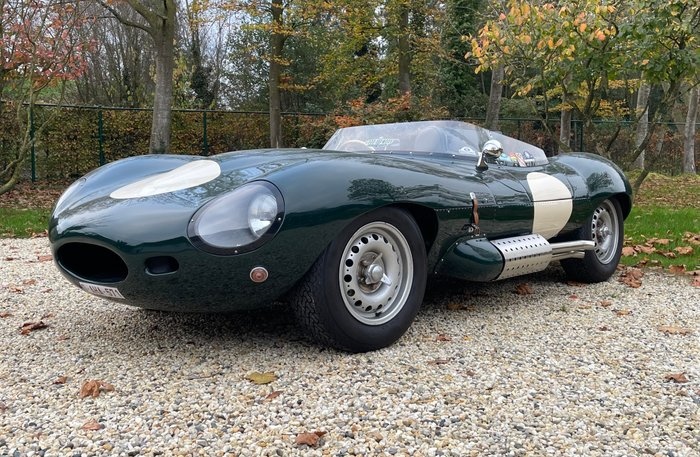 Jaguar - D type - Revival Replica De Jaguar D-type, geproduceerd tussen 1954 en 1957, speciaal voor de 24 uur van Le Mans, was uitgerust met de 6-cilinder XK Jaguar-motor. Iconisch ontwerp voor een raceauto, zoals Jaguar beweert, werden er slechts 75 originele auto's geproduceerd. Dit is een uitstekend replica van een Jaguar D-type, gebouwd in 1960 door Revival Motorsport Ltd. voor het doel van een 'race voor één man'. Het verkeert in originele staat met weinig kilometers, na de revisie van de motor in 2003. De leeftijd van de auto staat toe dat deze deelneemt aan de meeste oldtimerrally's. Rechtsbestuur Revival Motorsports Ltd bouwt slechts 27 vergelijkbare auto's. Belgische documenten, geldige technische certificering tot 07/2028. Belastingrapport Lichaam & verf: De auto is degelijk, geen grote reparaties aan het carrosserie, geen roest op de structuur, noch op de carrosserie. De racinggroene laklaag verkeert in goede staat, met enkele kleine scheurtjes door steentjes, geen grote schade, noch deuken op het lichaam. Stalen buistubber chassis met composiet/kevlar lichtgewicht behuizing en aluminium onderdelen. Geschatte pk 265. Snel voertuig door de lichte carrosserie. Het uitlaatgeluiddemper is verborgen achter een geperforeerd inox plaat. Inox uitlaatpijpen aan de achterbumper. Replica gebouwd door Revival, zeer vergelijkbaar met de echte D-type, met veel details en het gebruik van originele Jaguar-onderdelen. De originele Jaguar-radiotovellen verkeren in zeer goede staat met retrobanden uit 2018. Er zijn nieuwe koplampen gemonteerd voor betere zichtbaarheid 's nachts. Mogelijkheid om een rollbar te plaatsen. Het ingebouwde blusser-systeem met externe schakelaar was uitgeschakeld. Interieur: Interieur met gebruik van leer en aluminium onderdelen. Op het leer zijn alleen gebruikssporen, geen grote krassen of versleten leer. Dashboardinstrumenten van Smiths gauges zijn gebruikt. Snelheidmeter in mijlen. Brantz Tripmaster op GPS, backtrack, licht voor copiloot en mechanische chrono geïnstalleerd voor rallygebruik. Batterijschakelaar en verwijderbaar stuurwiel. Deksel voor de cockpit inbegrepen. Mechanisch Een volledige revisie van de 6 cilinder Jaguar 4200 cc motor in 2003, met enkele extra afgestemde onderdelen, en een volledig doorstromende oliefilter (zie afbeelding van de motorrevisie specificaties). Motor uitgerust met 3 SU-carburateurs, recente volledige revisie in 2023. 5-versnellings handgeschakelde versnellingsbak. Aluminium brandstoftank met cachetank en elektrische brandstofpomp. De schijfremmen voor en achter verkeren in goede toestand, elektrische apparatuur werkt naar behoren. Een geweldige kans om een prachtige Jaguar D te kopen, in zeer goede staat, heel vergelijkbaar met het echte ding, om mee te racen, rijden en jarenlang van te genieten.