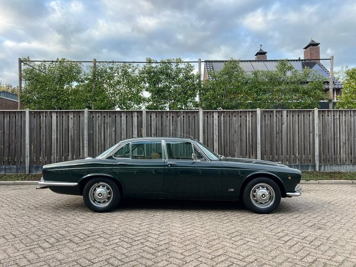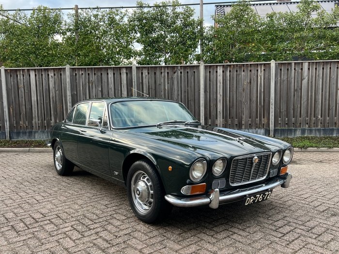 Zeer mooie Jaguar XJ6 4.2 Series 1 De Jaguar was jarenlang onderdeel van een privé collectie en heeft af en toe met mooi weer een klein ritje gemaakt om alles gangbaar te houden. De auto is in een redelijk nette staat en rijdt remt en schakelt goed maar heeft vanwege het weinige gebruik heeft ze wel aandacht nodig onder andere wil dat zeggen dat alles eens nagekeken moet worden, carburateurs nagekeken moeten worden en dat de Jaguar een servicebeurt behoeft. Lakwerk: Zeer netjes met een mooie diepe glans. Enkele kleine plekjes zijn aanwezig. Er is geen overmatige roest aanwezig. De pasnaden zijn nog keurig. De chroomdelen zijn ook nog in zeer mooie conditie met gebruikssporen. Interieur: Het interieur verkeert in een redelijk tot nette conditie. Er is een scheur in de achterbank en wat beschadigingen die gemakkelijk zijn te verhelpen. De deurpanelen zijn in redelijke conditie maar relatief eenvoudig te vervangen of opnieuw te bekleden. Het dashboard en houtwerk zijn nog in keurige conditie Techniek: De motor loopt goed, maar de carburateurs dienen afgesteld te worden. Verder schakelt de versnellingsbak goed en remt de auto zoals het hoort. Het is wel raadzaam om alles even goed na te lopen voor dat de auto weer op de openbare weg gereden gaat worden. Overige: Wij kunnen u helpen met de export documenten. Mocht u een goede indruk van de auto willen krijgen dan kunt u het beste de auto komen bekijken voordat u een bod doet.