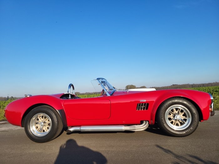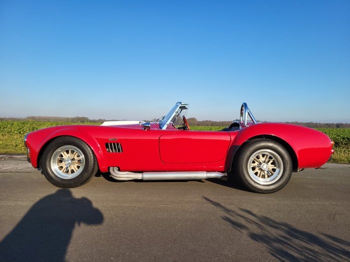 Shelby Cobra 427 Replica 1992 Deze Cobra is gebouwd door Classic Roadsters LTD in Fargo, USA en is werkelijk een prachtige verschijning. In de ultieme kleurencombinatie rood / wit. Carrosserie: De carrosserie is in bijna perfecte staat, lichte steenslag aan de voorzijde, maar geen rare plekken of krassen. De witte strepen zijn prachtig meegespoten in de lak. De passingen van de deuren en motorkap en kofferklep zijn prima en zoals het hoort. Motorisch: De Cobra is voorzien van een 427 (7.0) Liter V8 met injectie. Deze is genoeg om 261 KW op te brengen en je in je stoel te drukken. Deze V8 is gekoppeld aan een handgeschakelde Tremec 5-versnellingsbak waarmee de combinatie compleet is. Vooral als het luchtfilter verwijderd is, en de 8 prachtige inlaatkelken zichtbaar worden, toont het motorblok zijn schoonheid. Zo heeft Caroll Shelby in 1965 ook de originele Cobra bedacht. Enkel heeft deze Cobra injectie in plaats van een carburateur motor waarmee deze wel weer een stuk betrouwbaarder. Interieur: Het interieur is zeer mooi, met originele kuipstoelen en Houten stuurwiel. Het dashboard is mooi leder gestoffeerd en straalt luxe uit. evenals de meter met hun chromen uitstraling. Bij de Cobra word ook het originele dekzeil geleverd. Deze is ook te zien bij de foto's, deze kun je met drukknoppen monteren en eventueel de bestuurders of bijrijders kant open-ritsen. Onderstel: De bodem van de Cobra is zeer netjes, en heeft geen rare plekken of beschadigingen. En is opgebouwd met een ''boxed frame'' dus sterker als de reguliere Cobra's. De banden zijn in zeer goede conditie. Evenals de originele gegoten velgen. Kenteken/registratie: De Cobra is door ons geïmporteerd en door ons bij de Nederlandse RDW (Rijks Dienst Wegverkeer) volledig gekeurd en nagekeken. Dus deze Cobra kan overal in Europa geregistreerd worden met deze Europese Toelating. Hij komt rechtstreeks uit de Verenigde Staten, dus het is een schone registratie. De auto is dus met USA papieren geïmporteerd naar Nederland. Ook voor Hulp bij transport of registratie kunnen wij als verkopende partij u bij helpen. Kortom een prachtige zeldzame auto op Nederlands kenteken, klaar voor de komende zomermaanden