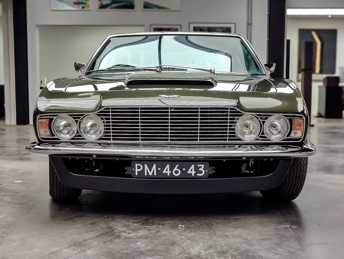Aston Martin - DBS - 1969, volledig gerestaureerd. Volledig gerestaureerde Aston Martin DBS uit de late jaren '60, met chassisnummer DBS/5630/R. De auto werd in 1969 gebouwd in Newport Pagnell en betreft een originele rechtsgestuurde uitvoering. Het betreft hier een serie 2-model, wat betekent dat de zijluchtroosters (zoals bij serie 1) zijn vervallen en vervangen door één luchtrooster onder de achterruit. Tevens zijn een voorbumperlip (frontspoiler) en bredere dorpels toegevoegd. Deze updates werden later ook toegepast op de DBS V8-modellen. Carrosserie & Lakwerk: De auto is professioneel gerestaureerd in zijn originele kleur: Olive Green, dezelfde kleur als de beroemde Bond-auto uit de film On Her Majesty's Secret Service”. De DBS is volledig gestript en daar waar nodig gerestaureerd. De DBS is volledig kaal gemaakt en opnieuw opgebouwd met het doel een volledig strakke auto te creëren. De DBS is grondig strak gemaakt en prachtig gespoten. Alle pasvormen zijn correct en gelijkmatig. Foto's van het restauratieproces zijn beschikbaar en deels zichtbaar in de fotoreeks. Technisch: De 4-liter 6-cilinder lijnmotor is volledig gereviseerd met de beste materialen. Ook de 3 SU-carburateurs zijn volledig gereviseerd. De motor loopt zeer mooi en regelmatig. De oorspronkelijke automatische versnellingsbak is vervangen door een Tremec handgeschakelde 5-versnellingsbak, wat zorgt voor meer rijplezier en verbeterde handling. Ook de versnellingsbak werkt zoals het hoort; uitstekend. Interieur: Het luxe interieur is voorbeeldig afgewerkt met Strawberry Red leder en aandacht voor detail. Het dashboard, deurpanelen en schakelaars zijn allen in zeer goede conditie. De snelheidsmeter is omgebouwd naar kilometers per uur (km/u), inclusief bijpassend overbrengingsmechanisme Het interieur is voorzien van een originele Radiomobile radio en Picco-hoorns. Documenten en overige informatie: Chassisnummer: DBS/5630/R Originele bouwdatum: 1969 Origineel rechtsgestuurd Het voertuig is volledig gerestaureerd en heeft 0 km gereden sinds de voltooiing. Naar alle waarschijnlijkheid de beste DBS van dit moment. Klaar voor aflevering aan de nieuwe eigenaar.