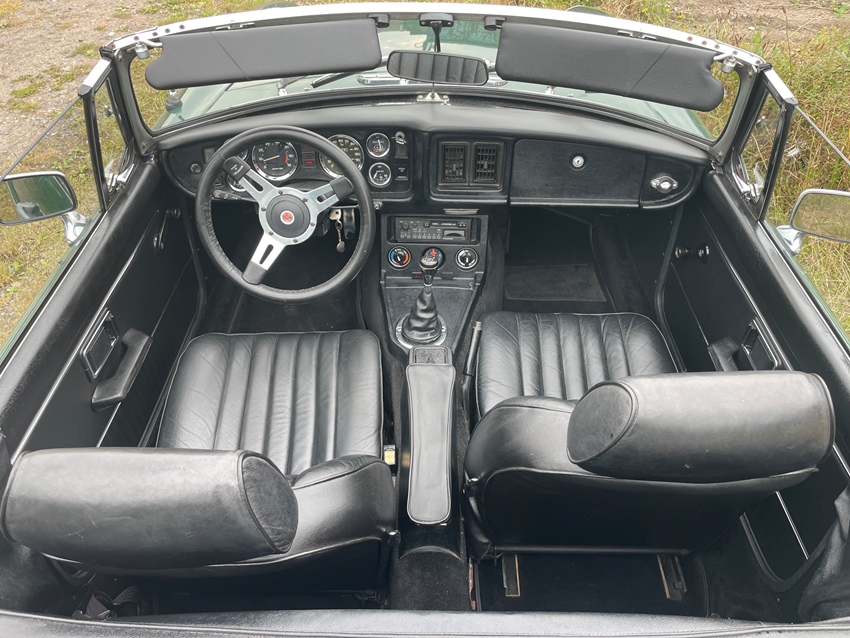 MG B 1977 1.8 Britisch racing green In zeer goede staat! Technisch perfect in orde gebracht. Motor draait als een klokje. Geen spatje roest, chassis perfect! Reeds vele onderdelen vervangen. Interieur en cabriokap in perfecte staat. Nieuwe vering achter, nieuwe banden.