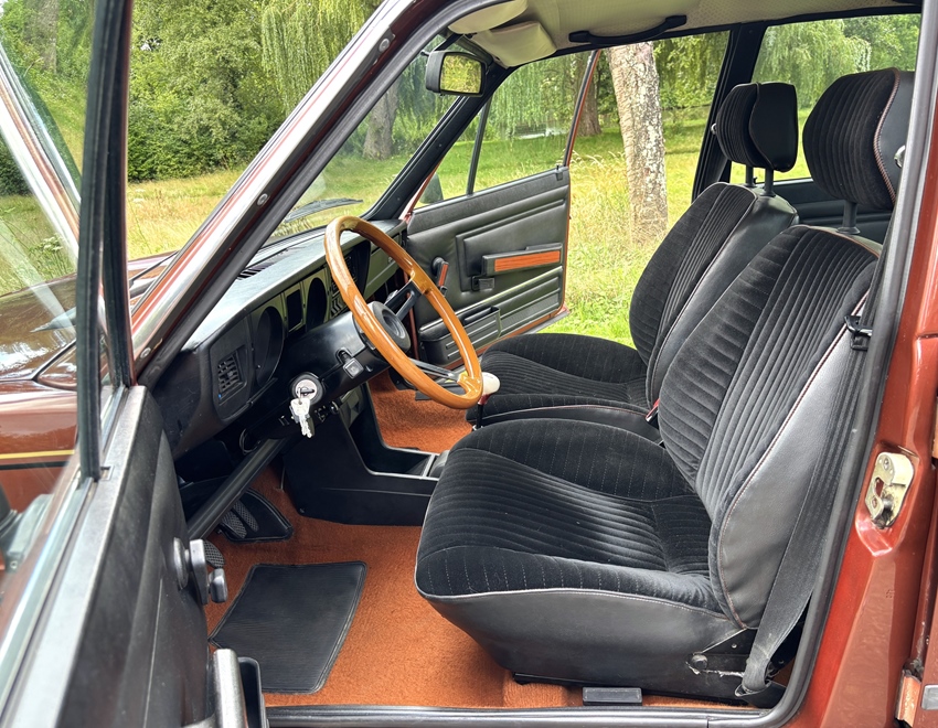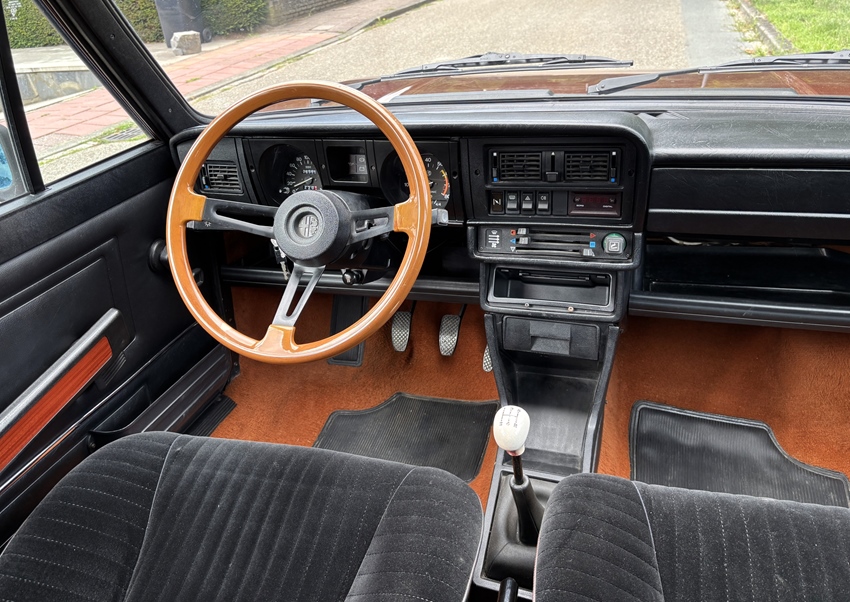 Het interieur is volledig origineel en in een opvallend nette staat. De stoelen zijn nog voorzien van de originele bekleding. Het dashboard is helemaal heel en de instrumenten werken allemaal zoals het hoort. Echt prachtig zo'n tijdcapsule. Deze Alfasud is van binnen dus 100% origineel en dat is uniek te noemen. De enkele overgebleven Sud's zijn vaak simpele 1.2 versies en zo'n prachtige 1.5 Valentino is bijna niet meer te vinden.