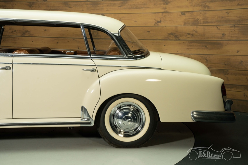 Zeldzame Mercedes-Benz 300 Adenauer te koop Wij bieden te koop aan deze prachtige Mercedes-Benz 300 Adenauer uit 1961. De Mercedes-Benz 300 Adenauer was destijds de meest luxe Mercedes-Benz die verkrijgbaar was en is in beperkte mate geproduceerd. Er zijn slechts 3077 exemplaren met de hand gebouwd, wat het vinden van een mooi exemplaar steeds lastiger maakt. Deze klassieker is afkomstig van een bekende klant die de auto bij ons in het verleden heeft gekocht. Hij wordt aangedreven door de matching numbers 2996cc 6-cilinder motor die gekoppeld is aan een automatische versnellingsbak.