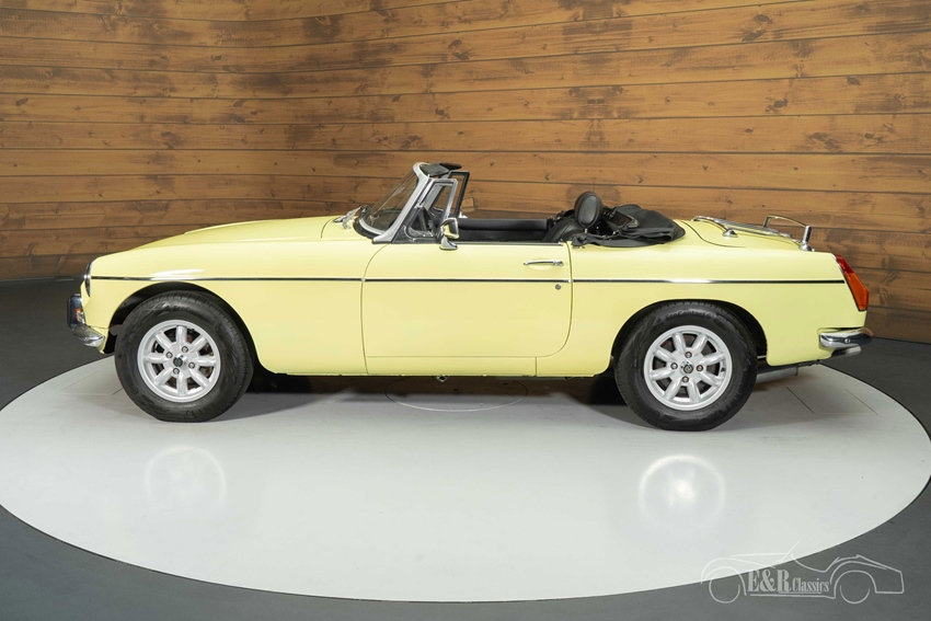 MG MGB Cabriolet in Primrose Yellow te koop Qua uiterlijk straalt deze MG pure klassieke charme uit met zijn frisse Primrose Yellow lakwerk dat prachtig combineert met de zwarte soft top. De sportieve Minilite stijl velgen geven de auto een stoere uitstraling, terwijl het handige kofferrek extra functionaliteit toevoegt. Het interieur is uitgevoerd in zwart kunstleder, wat mooi aansluit bij het exterieur en zorgt voor een stijlvol contrast. Samen met de chromen details en de klassieke cockpit vormt dit een harmonieus geheel dat uitnodigt tot vele plezierige ritten in de open lucht.