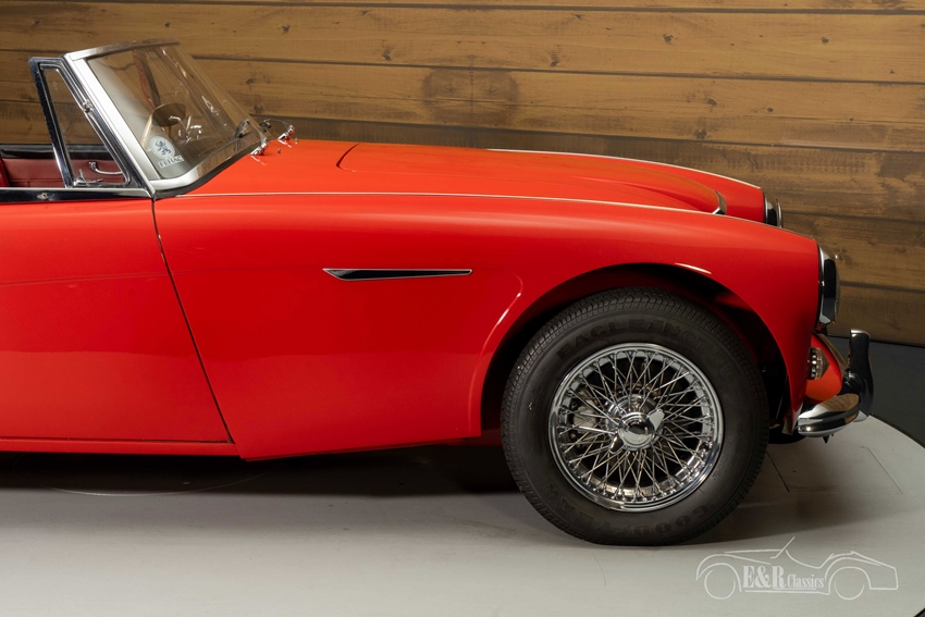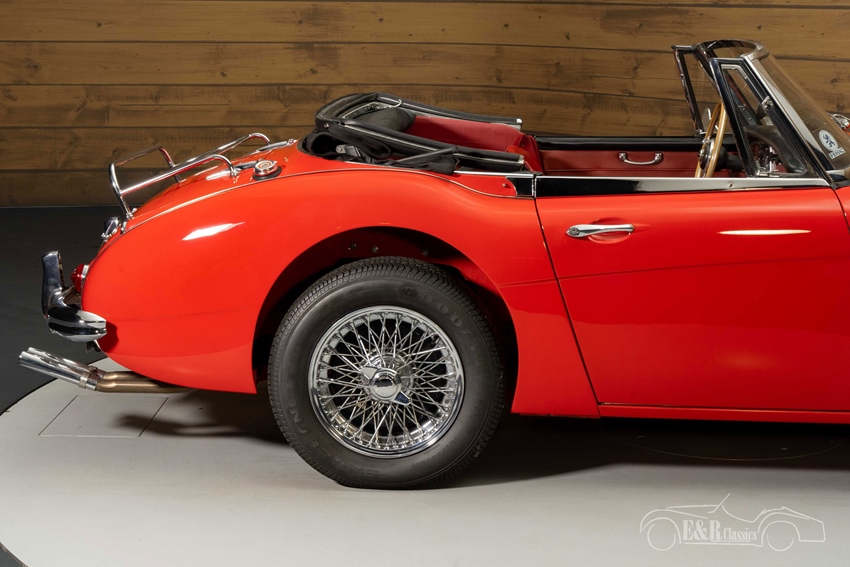 Austin Healey 3000 MK3 in topstaat te koop Deze Austin Healey is echt een plaatje om te zien. Het rode lakwerk staat deze klassieker prachtig en combineert erg mooi met de chromen spaakwielen en alle accessoires. Het interieur is voorzien van rode lederen bekleding met een houten dashboard en stuurwiel. Om het geheel af te maken is de Healey uitgerust met een zwarte soft top zodat u ook bij twijfelachtig weer heerlijk erop uit kunt trekken. Kortom, een prachtige Matching Numbers Austin Healey die helemaal klaar is voor veel mooie toertochten.