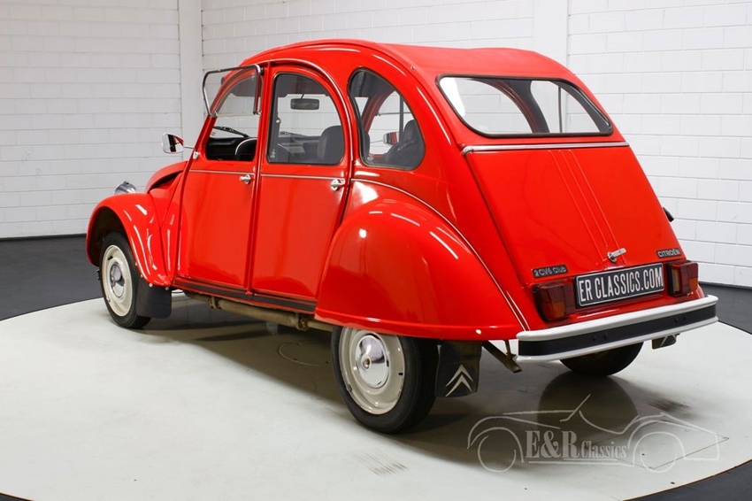 Rode Citroën 2CV te koop De Citroën 2CV die we hier te koop aanbieden is echt een plaatje om te zien. Het rode lakwerk past helemaal bij de Franse klassieker en combineert erg mooi met de beigekleurige wielen, de chromen koplampen en het rode roldakje. Het interieur verkeert in een zeer nette staat en is uitgerust met luxe, geruite bekleding en stoelen met hoofdsteunen. Kortom, een prachtige gerestaureerde Citroën 2CV die helemaal klaar is voor zijn nieuwe eigenaar.