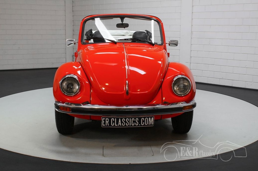 Rode VW Kever Cabriolet uit 1977 te koop Alsof een Volkswagen Kever er van zichzelf al niet geweldig uitziet, is deze Kever ook nog eens voorzien van een prachtig rood lakwerk. Deze kleur past helemaal bij de Duitse klassieker en combineert erg mooi met alle chromen accessoires. De Kever is tevens voorzien van een zwart interieur en zwarte soft top die mooi afsteekt tegen het rode lakwerk. Kortom, een zeer compleet uitgeruste Kever Cabrio die helemaal klaar is voor zijn nieuwe eigenaar.