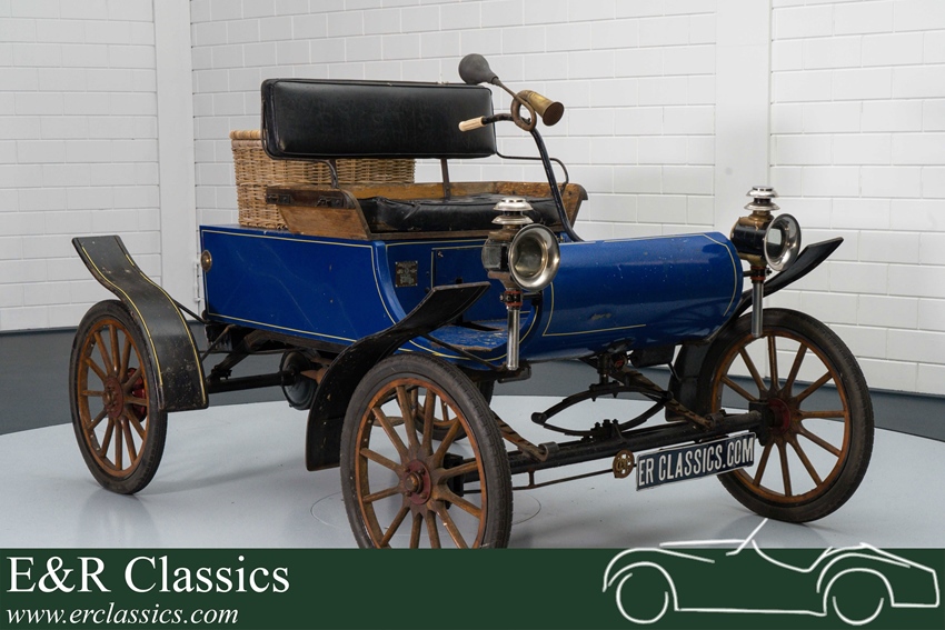 - Replica van de Oldsmobile Curved Dash - Eerste in massa geproduceerde auto - Eencilinder Cushman Husky-motor - Halfautomatische transmissie met 2 snelheden - Prachtige patina