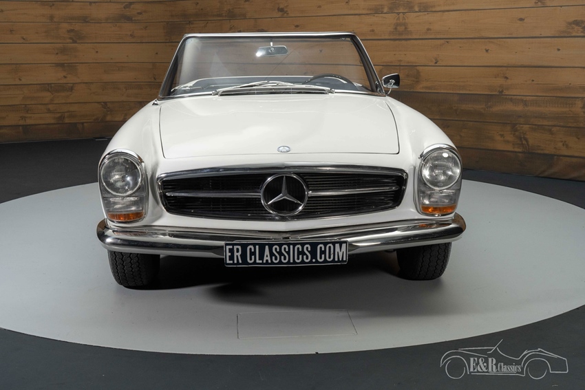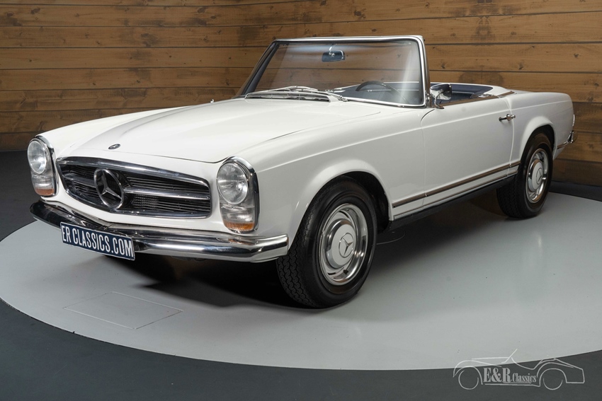 Mercedes-Benz 230 SL in goede staat te koop Wij bieden te koop aan deze mooie Mercedes-Benz 230 SL uit 1964. De Pagode is afkomstig van een vaste klant van ER Classics en is in het verleden hobbymatig gerestaureerd. Zowel optisch als technisch verkeert de Mercedes-Benz in een goede staat. Hij wordt aangedreven door een 2300cc 6-cilinder motor die gekoppeld is aan een handgeschakelde 4-versnellingsbak.