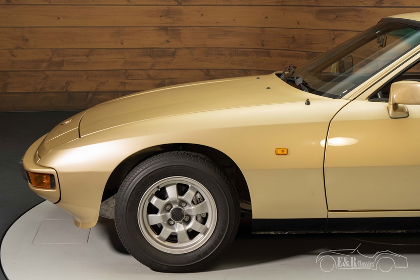 Porsche 924 te koop bij ER Classics De Porsche 924 die we hier te koop aanbieden is uitgevoerd in een prachtig goudkleurig metallic lakwerk dat helemaal past bij deze jaren 80 klassieker en erg mooi combineert met het bruine interieur. Het interieur verkeert in een nette staat en is uitgerust met donkerbruine lederen bekleding die mooi afsteekt tegen het goudkleurige lakwerk. De Porsche is uitgerust met elektrisch bedienbare ramen en een kanteldakje.