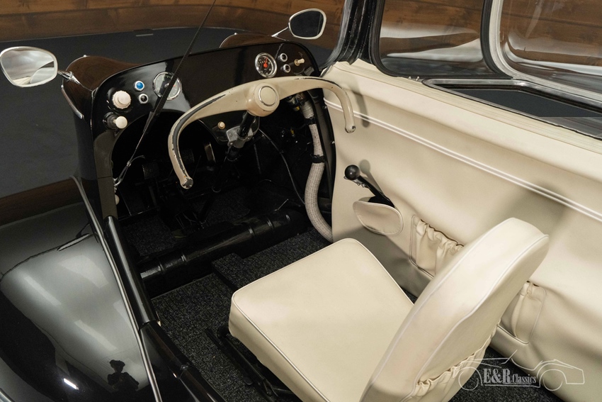 Messerschmitt KR 200 met aanhanger te koop De Messerschmitt KR 200 die we hier te koop aanbieden is echt een plaatje om te zien. Hij is tijdens de restauratie zwart gespoten en met een wit kunstlederen interieur uitgerust. Alsof de looks van de Messerschmitt KR 200 nog niet bijzonder genoeg zijn, wordt deze klassieker geleverd met een bijpassende PAV40 aanhanger uit 1967 in dezelfde stijl als de Messerschmitt.