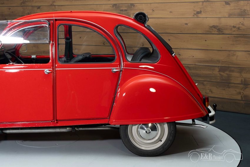 Rode Citroën 2CV te koop De Citroën die we hier te koop aanbieden ziet eruit zoals een echte 2CV eruit hoort te zien. Hij is uitgevoerd in een mooi rood lakwerk dat een echte eyecatcher maakt van deze klassieker. Het interieur is uitgerust met zwarte kunstlederen bekleding en er is gekozen voor een zwart roldakje dat u eenvoudig opent zodra de zon schijnt.