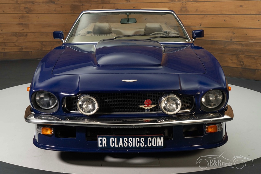 Aston-Martin V8 Volante Cabriolet LHD | Slechts 849 gebouwd | Matching Numbers | 1981 Highlights: -    81.080 km -    Links gestuurd -    Originele kleurcombinatie -    Slechts 849 gebouwd -    Matching numbers motor en kleurstelling Links gestuurde Aston-Martin V8 Volante Cabriolet te koop Wij bieden te koop aan deze prachtige Aston-Martin V8 Volante Cabriolet uit 1981. De Aston-Martin is afkomstig van de 4e eigenaar die de klassieker goed heeft laten onderhouden. Er zijn diverse facturen van het gepleegde onderhoud aanwezig. De Aston-Martin V8 Volante Cabriolet is een zeldzame verschijning, waarvan er slechts 849 zijn gebouwd. De auto die we hier aanbieden is er een met Weber carburateur, waarvan er slechts 282 links gestuurde zijn gebouwd. Een erg zeldzame klassieker dus en zeer gewild onder liefhebbers. De V8 Volante wordt aangedreven door de matching numbers 5.3 liter V8 motor die gekoppeld is aan een automatische versnellingsbak. De auto heeft een lage tellerstand van 81.080 km. Aston-Martin V8 Volante Cabriolet in Canterbury Blue te koop De Aston-Martin V8 Volante Cabriolet die we hier te koop aanbieden is echt een plaatje om te zien. De klassieker is uitgevoerd in de matching numbers, af-fabriek kleurstelling Canterbury Blue met een tan lederen interieur. De kleur staat prachtig op de Aston-Martin en combineert erg mooi met het tan interieur. Het dashboard verkeert in een nette, originele staat en is uitgerust met houtinleg wat helemaal past bij een jaren 80 klassieker. Om het geheel af te maken is er gekozen voor een beigekleurige soft top. Aston-Martin V8 Volante Cabriolet kopen? Bent u op zoek naar een Aston-Martin V8 Volante Cabriolet uit 1981? Laat dan uw gegevens achter via het contactformulier op deze pagina of bel direct met +31 416 751 393. Onze verkopers geven u graag antwoord op al uw vragen of maken zelfs een persoonlijke shopvideo voor u. Inkoop, inruil en bemiddeling mogelijk. Levering in België met oldtimer inschrijving mogelijk. U betaalt geen import-taksen. Wij kunnen helpen met financiering. Vraag ons verkoopteam.