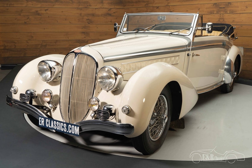 Very rare Delahaye 148L with Henri Chapron coachwork for sale We offer for sale this beautiful and very rare Delahaye 148L from 1939. On February 14th 1939, chassis number 60819 was delivered to the legendary coachbuilder Henri Chapron. There it was fitted with a Cabriolet “Mylord style” body, numbered 5975 by Chapron. The work was completed at the end of March of that year and was finished to the Grand Luxe specifications, including bespoke chrome work and luxury interior finishes.