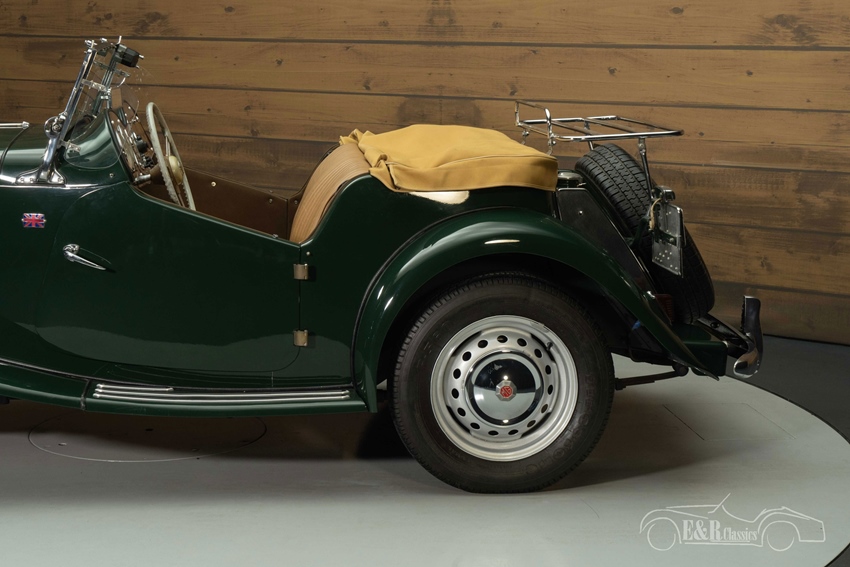 MG TD | Uitvoerig gerestaureerd | Zeer goede staat | 1953 Highlights: -    Uitvoerig gerestaureerd -    Zeer goede staat -    1250cc 4-cilinder motor -    British Racing Green lakwerk -    Tan interieur Uitvoerig gerestaureerde MG TD te koop Wij bieden te koop aan deze prachtige MG TD uit 1953. De MG is afkomstig van een bekende klant die de auto bij ons in het verleden heeft gekocht. Het gaat hier om een uitvoerig gerestaureerde klassieker die zowel optisch als technisch in een zeer goede staat verkeert. Hij wordt aangedreven door de 1250cc 4-cilinder motor die gekoppeld is aan een handgeschakelde 4-versnellingsbak. MG TD in British Racing Green te koop De MG TD uit 1953 die we hier te koop aanbieden is echt een plaatje om te zien. Hij is uitgevoerd in de prachtige kleur British Racing Green, heeft een groene grille en gespoten wielen. Deze kleurstelling in combinatie met het prachtige chroomwerk maakt er een echte eyecatcher van. De MG TD heeft tevens een extra set verstralers en kofferrek achterop. Het tan kleurige interieur combineert erg mooi met het British Racing Green lakwerk en het houten dashboard met chromen tellers. De MG heeft een tan kleurige soft top die u in een handomdraai inklapt zodra de zon schijnt.   MG TD kopen? Bent u op zoek naar een uitvoerig gerestaureerde MG TD uit 1953? Laat dan uw gegevens achter via het contactformulier op deze pagina of bel direct met +31 416 751 393. Onze verkopers geven u graag antwoord op al uw vragen of maken zelfs een persoonlijke shopvideo voor u. Inkoop, inruil en bemiddeling mogelijk. Levering in België met oldtimer inschrijving mogelijk. U betaalt geen import-taksen. Wij kunnen helpen met financiering. Vraag ons verkoopteam.