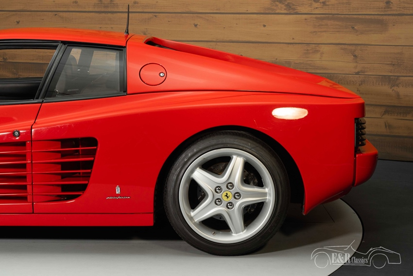 Ferrari 512 TR in Rosso Corsa te koop De auto is uitgevoerd in het klassieke en tijdloze Rosso Corsa lakwerk dat prachtig contrasteert met het strakke zwart lederen interieur. De originele vijfspaaks Ferrari-velgen, krachtige stylinglijnen en de brede achterkant met kenmerkende lamellen maken deze 512 TR tot een echte blikvanger. Het interieur ademt pure jaren ’90 Ferrari-DNA: sportief, luxueus en volledig gericht op de rijbeleving. De combinatie van de rode lak, leder en mechanische puurheid maakt deze Ferrari niet alleen een verzamelobject, maar ook een waar genot om mee te rijden.