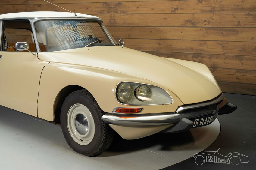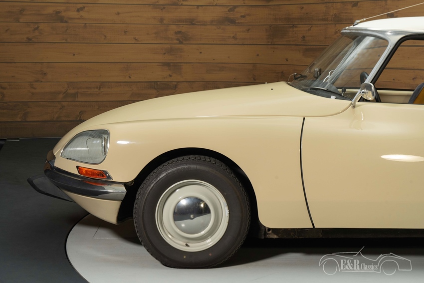 Beigekleurige Citroën D Spécial te koop Qua uiterlijk verkeert deze klassieker in goede staat. Het beigekleurige lakwerk, opnieuw aangebracht in 2010, sluit perfect aan op het warme, retro-chique interieur met stoffen bekleding in een diepe mosterdgele tint. De karakteristieke carrosserielijnen, sierlijke wieldoppen en het elegante chromen accentwerk maken dit een echte blikvanger. Binnenin ervaart u een prachtig samenspel tussen kleur en vorm, waarbij het minimalistische dashboard en het typische Citroën-stuur direct een gevoel van nostalgie oproepen.