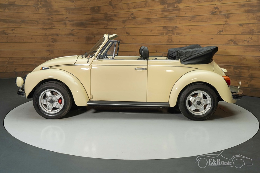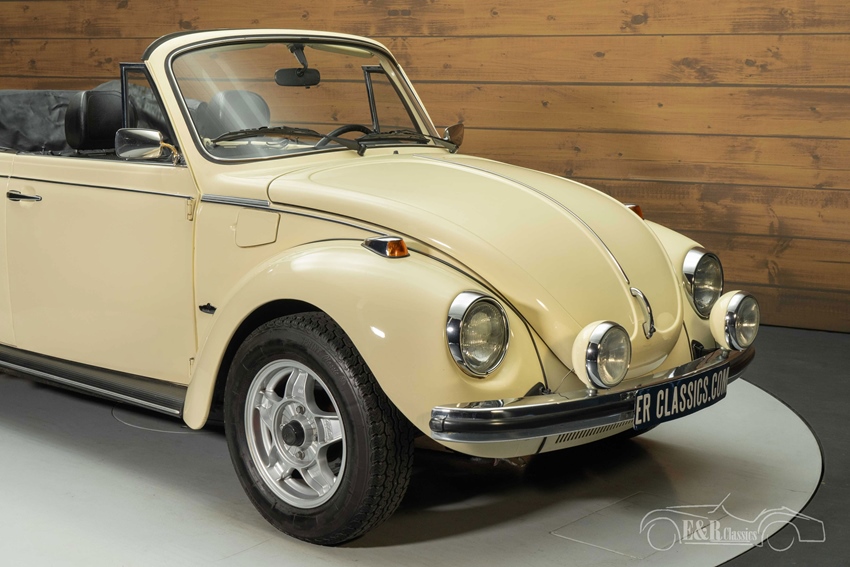 Beigekleurige Volkswagen Kever Cabriolet te koop Qua uitstraling straalt deze Kever pure charme uit. Het beigekleurige lakwerk combineert perfect met de zwarte soft top en het bijpassende zwarte interieur. De stijlvolle ATS lichtmetalen velgen geven de auto een sportieve uitstraling, terwijl de extra verstralers aan de voorzijde zorgen voor zowel karakter als betere zichtbaarheid. Binnenin vindt u een verzorgd interieur met klassieke patronen, een dashboard met originele details en extra meters onder het dashboard die het geheel aanvullen. De schijfremmen voor zorgen voor extra rijcomfort.