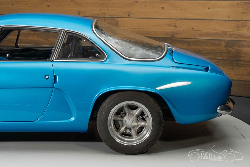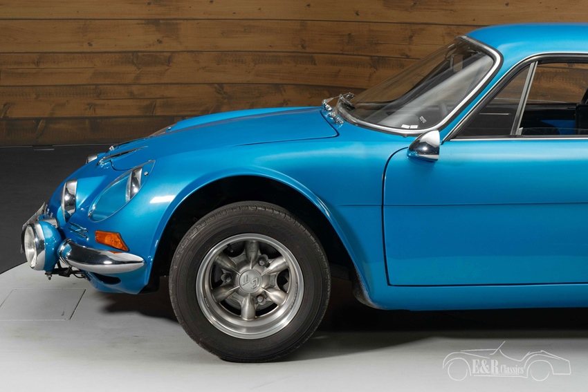 Alpine A110 1300 in Alpine Blue te koop Het koetswerk is uitgevoerd in het iconische Alpine Blue, een kleur die perfect samengaat met de rallygeschiedenis van het merk. De kenmerkende ronde koplampen, lichtmetalen velgen en extra mistlampen benadrukken het sportieve karakter. Het zwarte interieur, voorzien van klassieke sportstoelen en 4-punts gordels, vormt een stijlvol contrast met het exterieur. De combinatie van kleuren en details ademt pure jaren ’70 motorsport. Een unieke kans om een stukje zeldzame Franse autosportgeschiedenis te bezitten.