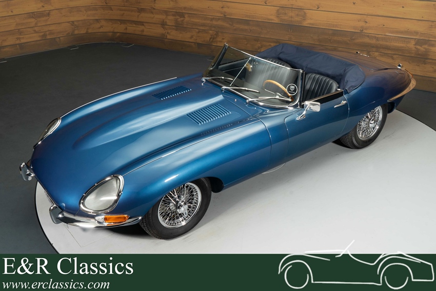 Uitvoerig gerestaureerde Jaguar E-Type S1 3.8 Cabriolet te koop De Jaguar E-Type Serie 1 3.8 OTS uit 1962 behoort tot de meest iconische sportwagens aller tijden. Dit exemplaar is uitvoerig gerestaureerd door specialisten en verkeert in schitterende conditie. Onder de motorkap ligt de originele matching numbers 3.8 liter 6-cilinder motor gekoppeld aan een handgeschakelde 4-versnellingsbak. Sinds de restauratie is er slechts 4.500 km gereden, waardoor de auto uitzonderlijk goed bewaard is gebleven. Bovendien is dit een unieke klassieker met 32 jaar één eigenaar, die de klassieker altijd met veel zorg heeft onderhouden. De bijzondere lak in Flag Blue Metallic is een hommage aan het legendarische Écurie Écosse raceteam, tweevoudig winnaar van Le Mans in de jaren ’50.