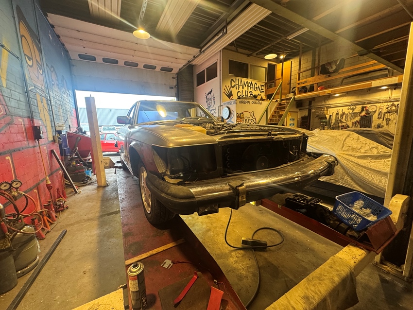 Mercedes R107. California import. geen motorkap en koplampen verder roestvrij werkende moter