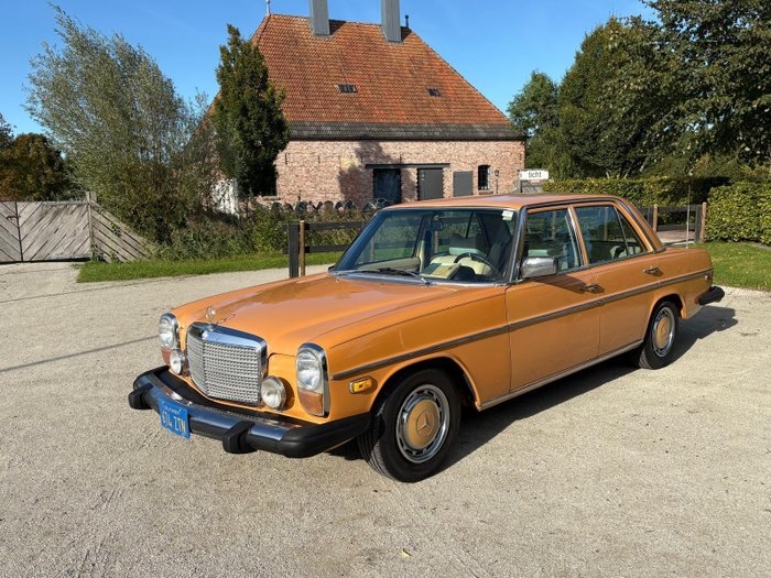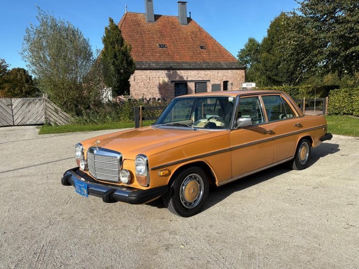 "Time capsule" Mercedes 300D 5 cilinder diesel automaat W115. 50 jaar oud in een unieke top staat! Deze kochten wij van een (oudere) eigenaar in Bakersfield. Algemeen : Totaal roestvrij (bodem kurkdroog en als nieuw) Zie foto's Lakwerk: Unieke en zeer zeldzame originele Peach kleur (Cayenneorange) Is ooit gedeeltelijk bijgespoten (wat kleurverschil laat zien in vooral het linker voorscherm). Lak ziet er verder nu nog steeds mooi uit (maar is op plekken wel doorgepoetst) Technisch : Loopt en schakelt en rijdt goed. Sunroof (zit wel vast) Elecktrische ramen. Met Airco. Inclusief alle boekjes. Gereedschap setje. (Banden hebben wel wat droogte scheurtjes) Interieur : Heel net interieur (alleen de vulling van de achterbank is bijna weg maar er wordt een nieuwe meegeleverd) Originele Becker radio. Overig : Evt. kunnen wij voor € 1000 extra er een Europese bumper en koplamp set bijleveren. Natuurlijk is deze sedan 50 jaar oud en de laatste jaren weinig gebruikt, en dus kan er altijd nog wel iets aan te verbeteren zijn. Kortom een hele mooie basis om zo mee te rijden of naar een hoger niveau te brengen. We proberen de auto's zo eerlijk en correct mogelijk te omschrijven maar het blijven gebruikte voertuigen dus er kan altijd iets zijn dat aandacht behoeft of enige gebruikssporen vertoont en verzoeken u dan ook bij twijfel de auto te komen bezichtigen. Voor deze Mercedes is geen COC document benodigd voor registratie binnen Europa (ivm de leeftijd) Wij kunnen u helpen met het transport door geheel Europa. Deze auto is te bezichtigen en evt. af te halen in Damwoude, Nederland.