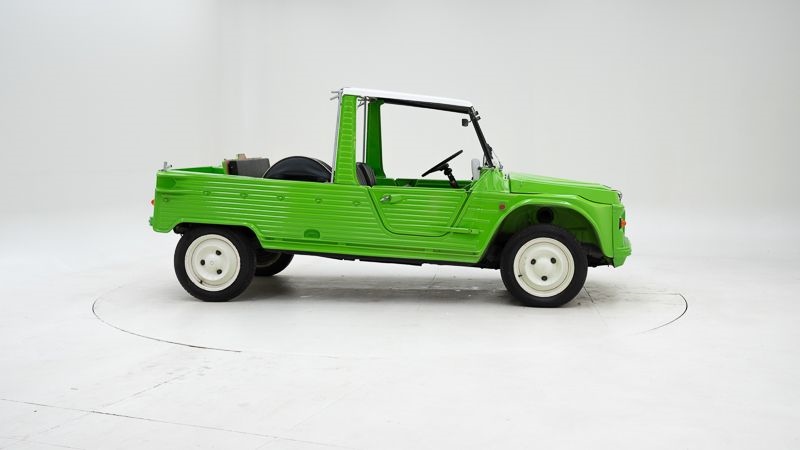De Citroën Méhari uit 1975 is een van de meest herkenbare Franse vrijetijdsauto’s, geliefd om zijn lichte kunststof carrosserie, eenvoud en avontuurlijke uitstraling. Dit exemplaar bevindt zich in oudere originele staat met sporen van gebruik en charme, ideaal voor de liefhebber van authentieke Méhari’s.