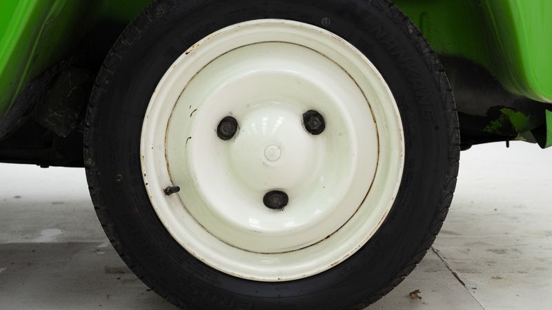 • Carrosserie: Herlakt met sporen van gebruik, krassen en kleine beschadigingen; op enkele plaatsen gebarsten. • Lakwerk: Op sommige plaatsen herspoten in lichtere tint; barstjes zichtbaar. • Onderzijde: Zeer vuil met oppervlakkige roest, maar geen ernstige aantasting. • Motorruimte: Compleet en functioneel; olie- en vuilsporen aanwezig; enkele kabels slordig afgewerkt. • Motor: Loopt goed met lichte sporen van slijtage; wat vochtig maar zonder lekken. • Versnellingsbak: Schakelt correct maar voelt wat los aan. • Remmen en handrem: Functioneren goed. • Elektriciteit: Dashboardbediening werkt niet; ruitenwissers defect; claxon functioneert wel. • Banden: Van 2021, met goed profiel rondom. • Interieur: Origineel met normale gebruikssporen; enkele kleine beschadigingen zichtbaar.
