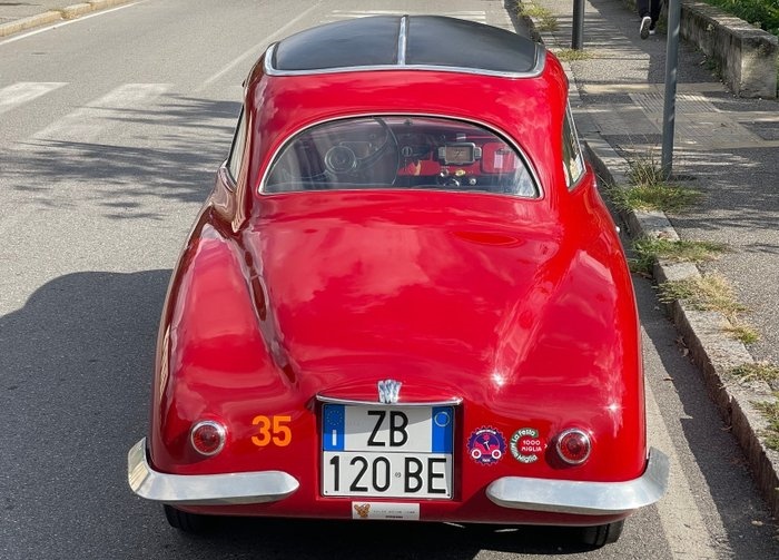 PANORAMISCH/VOORWAARDEN In 1939 kreeg Enrico Maestri van de beroemde piloot Paolo Butti de opdracht om een auto te bouwen om te racen in de categorie onder de 749 cc van de Mille Miglia. De auto is ontworpen en gebouwd in de fabriek aan de Via Roma in Piacenza. Geïnspireerd door de Alfa Romeo, ontwierp en bouwde Enrico Maestri de eerste aerodynamische coupé gebaseerd op het lange bladveersysteem van de Fiat 500 Topolino A. Met een aluminium lichaam dat 10% lichter is en een verbeterde mechanica, beschikt Maestri over betere prestaties. Echter, de slechte gewichtsverdeling ondermijnt de wendbaarheid, waardoor het meer geschikt is als toerauto. Helaas bleef het project in de wacht staan tot het uitbreken van de oorlog. Voltooid in 1945. De motor heeft een cilinderinhoud van 569, een zijaflaatklep en een maximale kracht van 20 paarden (vergeleken met 13 paarden voor de standaardversie). Ze reed in de eerste Mille Miglia, gehouden op 11 mei 1947 op het Circuito Comunale di Piacenza. Voor het eerst deed Ferrari mee aan de race, bestuurd door graaf Franco Cortese, waaraan ook Elio Zagato, Nuccio Bertone en Fissore deelnamen. Musa van de Mille Miglia van 1948. Deed mee aan de Mille Miglia van 1949 met Guarnaschelli en zijn copiloot. Het had niet succesvoller kunnen zijn. Het werd vervolgens in 1949 goedgekeurd. Maestri's werk bestond uit twee berlinetta's (gesloten) en vier barchetta's (open). In juli 1951 werd de Fiat Maestri Berlinetta verkocht aan Carlo Luigi Giglio. Hij woonde in de wijk Ivrea in Turijn, dus de auto heeft altijd zijn originele kentekenplaten behouden. Vervolgens werd het verkocht aan Mario Bemmer uit Florence. De restauratiewerkzaamheden duurden 18 maanden. Bij aankoop was de auto voorzien van vierkante mistlampen, maar het is onwaarschijnlijk dat deze tot de originele uitrusting behoorden. De volledig gerestaureerde Fiat Maestri heeft in de loop der jaren aan talloze historische evenementen deelgenomen. Auto gekocht door de huidige eigenaar in januari 2022 in Brescia, Italië. Voorheen had het de volgende eigenaren: 1. Paolo B. (1938-) 2. Carlo Luigi G. (Schilder uit Ivrea, Turijn) juli 1951 3. Eigenaar van Swap Show (circa 1980) 4. M. Bemer (Florence) 1994. Het jaar waarin de carrosserie, motor en al het andere werden gerestaureerd. In 2023 naar Japan gestuurd, waar hij werd opgeknapt, geverfd en gerepareerd van wat krassen. In 2024 keerde ze terug naar Italië. De laatste inspectie dateerde van februari 2025. De auto is gecertificeerd door de Japanse FIVA. Het is momenteel in uitstekende staat. documentatie Een bijgevoegde Italiaanse documenten. Italiaans FIAT-register Japanse FIVA-certificering Auto zichtbaar in Bergamo, Italië.