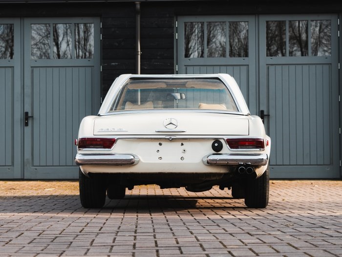 1969 Mercedes-Benz 280 SL Te koop aangeboden wordt een Mercedes-Benz 280 SL uit 1969, ook wel bekend als de W113 "Pagode", een tijdloze roadster met twee zitplaatsen die tussen 1968 en 1971 werd geproduceerd. Dit model is uitgerust met zowel een softtop (donkerblauw) als de iconische, verwijderbare hardtop in Pagode-stijl, waardoor de auto zowel als open als gesloten coupé kan worden gereden. Daarnaast beschikt de 280 SL over een Nederlands kenteken. Mechanisch: Mechanisch is de auto in een goede staat. De motor loopt netjes en reageert goed op het gas en ziet er netjes uit. De versnellingsbak gaat goed door alle versnellingen heen en de auto rijdt goed. Daarnaast functioneren de remmen ook naar behoren en is de ophanging in goede staat en is er recent veel aan gedaan om alles netjes te krijgen. Dit is ook terug te zien op de foto's Interieur: Het interieur van de auto bevindt zich in een nog nette staat. Het tapijt ziet er nog netjes uit alsook de instrumenten. De zitting en rugleuning van de stoelen vertonen normale gebruikssporen, maar bevatten geen scheuren en zien er voor de leeftijd nog goed uit. Over het algemeen bevindt het interieur zich in een nette staat met normale gebruikssporen. Carrosserie en lak: De carrosserie bevindt zich in een goede staat, zoals ook zichtbaar is op de foto's. Erg solide bodem. Het lakwerk vergt wat aandacht, zo vertoont de bestuurdersdeur kleurverschil en zou de auto voor de netheid een keer opnieuw gespoten kunnen worden, maar er kan zo prima mee gereden worden. De pasnaden van de auto zijn verder netjes. De auto is te bezichtigen in Nijmegen. We adviseren ook altijd om langs te komen en de auto te bekijken om zo het beste beeld te krijgen van de staat van de auto. Transport: Wij kunnen het transport voor u regelen, zowel open als gesloten. Export: We bieden volledige exportondersteuning aan, mocht u de auto willen exporteren.
