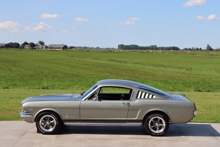 Ford Mustang Fastback 1966 - Gerestaureerd tot in detail! - Metallic lakwerk 'Gunmetal grey' met race-strepen - Gereviseerde motor en versnellingsbak - Krachtige "289" (4.7-liter) V8-motor met handgeschakelde versnellingsbak - 'Retrosound' radio met extra speakers HISTORIE/DOCUMENTATIE Deze 1966 Ford Mustang Fastback is in 2019 geïmporteerd uit Kaysville, Utah (Verenigde Staten). Vervolgens is gerestaureerd, waarbij onder meer het lakwerk opnieuw is gespoten en de motor en versnellingsbak zijn gereviseerd. Verder zijn veel onderdelen vernieuwd, maar het interieur is zo origineel mogelijk gehouden. Hierdoor verkeert de auto is zeer goede conditie, blijkt ook uit het taxatierapport uit 2022. Bij de auto zijn veel (onderhouds)facturen aanwezig. De auto is sinds 2021 op Nederlands kenteken gerestaureerd. EXTERIEUR In woorden is bijna niet uit te drukken hoe gaaf deze Mustang is! De 1966 Fastback is waarschijnlijk de mooiste Mustang ooit gebouwd, bovendien is dit exemplaar ook nog eens perfect uitgevoerd in 'Gunmetal Grey' metallic lakwerk met zwarte racestrepen. Het lakwerk is in uitstekende conditie zonder beschadigingen. Velgen maken de auto, en dus zijn schitterende 15" 'American Racing' velgen gemonteerd. Uiteraard in uitstekende staat, en voorzien van goede BF Goodrich Radial T/A banden. Ook het chroomwerk en de verlichting van de auto zijn eveneens zeer gaaf en fris te noemen. INTERIEUR Het interieur is (grotendeels) origineel en verkeert in goede staat. De bekleding is uitgevoerd in zwart skai-leer. De bestuurders kijkt uit over het kenmerkende houten/aluminium stuurwiel en diepe wijzertellers. Ook is er een rally pack gauge cluster set geplaatst met een tachometer en klokje. Een moderne 'Retrosound' radio met klassieke looks is gemonteerd, voorzien van een USB-aansluiting, bluetooth en twee extra speakers in de schutpanelen. Het interieur vormt een ideale combinatie van comfort, originaliteit en klassieke looks. Bovendien is de Mustang een 2+2, waardoor 4 personen kunnen genieten van de rijervaring van de Mustang. TECHNISCH Mede doordat de motor en versnellingsbak zijn gereviseerd rijdt deze Mustang fantastisch. De '289' 4.7-liter V8-motor levert 225 pk en loopt en klinkt fantastisch. De motor is voorzien van een Edelbrock 4 Barrel valstroomcarburateur. Het uitlaatsysteem is vervangen door een hoogwaardig systeem met chromen uiteinden. De handgeschakelde 4-versnellingsbak schakelt soepel en naar behoren. De rembekrachtiger en remschijven aan de voorzijde zijn vernieuwd. Ook de onderzijde van de auto is fris en vernieuwd.