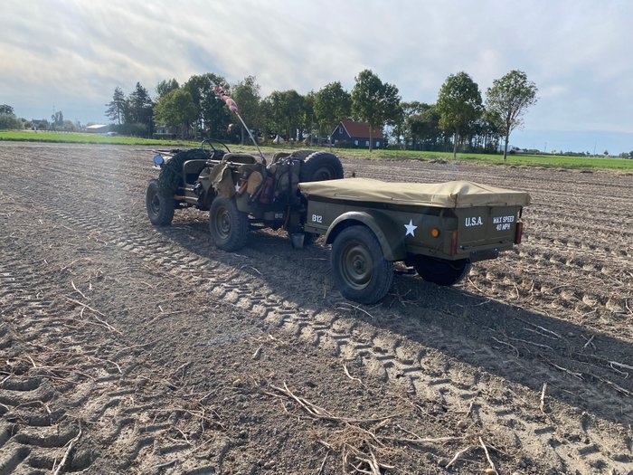 ALGEMEEN: Willys Jeep met aanhanger, een complete set inclusief aankleding. Het gaat om een Amerikaanse Willys uit bouwjaar 1947, voorzien van een Duitse Mercedes 200D dieselmotor. De auto heeft een Belgische registratie, waarbij ook diesel officieel op het kenteken staat vermeld. CARROSSERIE/LAKWERK: De carrosserie is in goede staat maar vertoont gebruikssporen zoals krassen en deuken. Het betreft een oudere restauratie. De auto wordt geleverd met huif, winterdeuren en halve deurtjes. De huif en deurtjes hebben wat beschadigingen, maar er is canvas aanwezig voor eventuele reparaties. TECHNISCH: Technisch verkeert de Jeep in goede staat en is voorzien van veel nieuwe onderdelen, waaronder remmen, olie en filters. De 4x4 aandrijving functioneert goed, inclusief hoge en lage gearing. INTERIEUR: Binnenin is de Jeep ingericht als WO2-tribute met veel originele details en onderdelen die teruggaan naar de oorlogsjaren. DOCUMENTEN: Belgisch kenteken aanwezig, geregistreerd als diesel. AFHALING: De auto kan bezichtigd en opgehaald worden in Bruinisse. Transport kan in overleg verzorgd worden. OVERIGE INFORMATIE: De set komt zeer compleet, zoals te zien op de foto's en video's, inclusief alle aankleding en extra (nieuwe) onderdelen. Zelden worden zulke complete exemplaren aangeboden. Video's: https://youtu.be/rTomHivpHrw?si=jM564zEpOs1vnCHX https://youtu.be/cFU_WqEMMWQ?si=86MRU0TLaOxvMBO