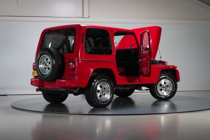 1991 Jeep Renegade HO – Zeldzame High Output Editie, Oorspronkelijk voertuig uit New York – Van de eerste en originele eigenaar Een zeldzame en gewilde 1991 Jeep Renegade HO (High Output) — een van de meest begeerde varianten van Jeep's iconische 4x4 lijn. Deze Jeep heeft zijn hele leven gehad bij slechts twee zorgvuldige eigenaren: De eerste en originele eigenaar in New York, VS, die het voertuig vanaf nieuw heeft onderhouden, en De tweede eigenaar ervan in België/Nederland, waar het vandaag nog steeds geregistreerd staat. Oorspronkelijk nieuw geleverd in New York, is deze Renegade nu geregistreerd in Nederland en verkeert hij nog steeds in uitstekende, grotendeels originele staat met slechts 67.754 mijlen op de teller. Een goed bewaard en authentiek voorbeeld voor verzamelaars en liefhebbers van klassieke Amerikaanse off-roaders. Motor en aandrijflijn Onder de motorkap ligt de legendarische 4.0L Inline-6 High Output motor van Jeep, gekoppeld aan een handgeschakelde transmissie en een 4x4-aandrijflijn. De motor start gemakkelijk, loopt soepel en levert sterke prestaties zowel op de weg als off-road. Schakelen is precies en de koppeling grijpt schoon. Er zijn geen grote lekken vastgesteld. Het koelsysteem en de riemen verkeren in goede staat. Remmen, vering en banden verkeren in goede algehele staat, zonder ongebruikelijke geluiden of vibraties tijdens het rijden. Recent onderhouden en klaar om te genieten. Carrosserie en verfwerk Afgewerkt in fel rood, springt deze Renegade meteen in het oog — de verf heeft een mooie glans en blijft origineel. Lichte leeftijdsgebonden imperfecties kunnen zichtbaar zijn, maar de algehele presentatie is uitstekend. Geen tekenen van corrosie of eerdere schade door een ongeluk zijn gevonden. De onderkant is schoon, ondergecoat en stevig. Rubberafdichtingen, lichten en glas verkeren in goede staat. Interieur: Het bijpassende rode interieur behoudt zijn authentieke periode-uitstraling en charme. Stoelen, dashboard en deurpanelen verkeren in goede originele staat, met slechts lichte gebruikssporen die passen bij de leeftijd en het aantal gereden kilometers. Headliner en tapijten zijn netjes en heel. Alle meters en de meeste schakelaars en elektrische onderdelen functioneren correct. Over het algemeen weerspiegelt de cabine zorgvuldig gebruik en correct onderhoud. Documentatie: • Oorspronkelijk voertuig uit New York – vanaf nieuw in bezit geweest door zijn eerste en oorspronkelijke houder. Registratie in Nederland inbegrepen • Duidelijke kilometerstand: 67.754 mijlen Invoerrechten betaald binnen de EU • Internationale verzending kan op aanvraag worden geregeld. Highlights • Zeldzame Hoge Output (HO) 4.0L inline-6 motor Handgeschakelde transmissie en 4x4-systeem Iconische rood-op-rood kleurcombinatie • Lage kilometerstand: 67.754 mijlen Uitstekende originele staat door het hele object. Alleen twee eigenaren sinds nieuw. Goed onderhouden en klaar om te rijden Oorsprong uit New York