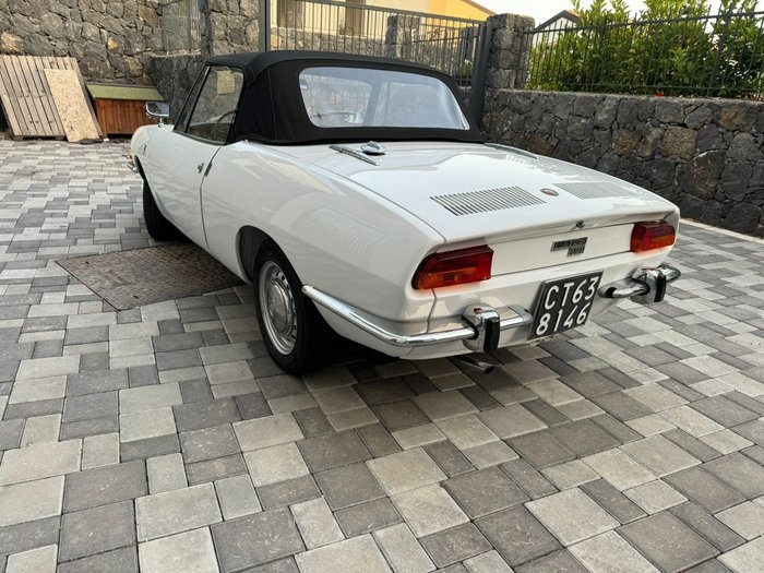 PANORAMISCH/VOORWAARDEN Prachtige Fiat 850 Spider II° Serie, in meer dan goede algemene staat, meteen gebruiksklaar! Ze is in 1969 in Italië geregistreerd en heeft 3 eigenaren gehad. Auto met carrosserie in uitstekende staat en geen roestplekken. Verf volledig opnieuw aangebracht in januari 2024, samen met de chromen afwerking van de voor- en achterbumpers. Motore en mechanica gereviseerd, in werking en in goede staat. Laatste onderhoudsbeurt 2 maanden geleden. Elektrisch systeem hersteld en gecontroleerd in april 2024, werkend in al zijn onderdelen. Behang in uitstekende staat, drie jaar geleden opnieuw gedaan. Kleine defect op het dashboard, passagierszijde, waar een kleine scheur wordt gemeld. documentatie Een set Italiaanse documenten. De auto staat in Catania voor bezichtiging of afhaling.