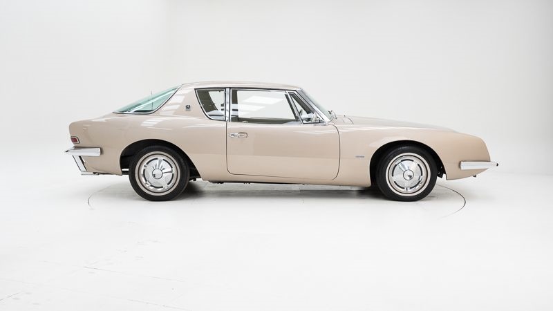 Merk: Studebaker Model: Avanti R2 Supercharged Bouwjaar: 1963 Motor: 4.936 cc V8 met Paxton-supercharger Transmissie: Manuele versnellingsbak Kleur: Gold Kilometerstand: 57.752 miles (afgelezen kilometerstand – bekijk onze video over km/miles bij een oldtimer) Chassisnummer: 63RQ2435 Stuurpositie: Links