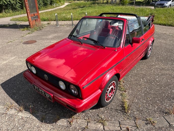 Te koop een heel mooie zeldzame, Volkswagen Golf Cabriolet Zwitserse Exclusieve Red Special. 500 stuks wereldwijd. Deze auto is zeer goed onderhouden. De auto start, rijdt en remt zoals het hoort. De speciale Red-editie, buitenkant in rood, interieur in rood, rood softtop, rode softtopkap en rode velgen, wordt uitsluitend voor Zwitserland geproduceerd. Op dit moment is er geen vergelijkbaar exemplaar te koop. De bijbehorende rode striping rondom de auto is niet meer helder, maar omwille van originaliteit (nog) niet verwijderd. Het is een auto die heel veel onderhoud heeft gehad. Een dossier voor onderhouds- en factuurgegevens is beschikbaar. Zeer goede banden, niet uitgedroogde Zij heeft net een grote onderhoudsbeurt gehad, waaronder de distributieriem en een nieuwe uitlaat. Deze auto is bedoeld voor kenners die willen genieten van een voertuig in zeer goede staat, maar dat niet perfect is. Momenteel met Franse registratie en oldtimer kenteken, de technische keuring geldig in Frankrijk tot eind 2027. De nog originele kap vertoont aan beide zijden een scheurtje bij de knikpositie boven de deuren en achter bij de bevestiging aan de achterspatborden is ook een klein scheurtje waarneembaar. Binnenzijde van de kap is in uitstekende kap. Originele tonneau cover en uitneembaar windscherm zitten bij de auto. Omdat deze mooie Golf cabrio origineel te houden, hebben wij de kap niet vervangen. Wij kunnen hier wel in adviseren en u in contact brengen met een gerenommeerde firma in Nederland die de kap kan vervangen. Het wordt aanbevolen om het voertuig te bekijken voordat u een bod uitbrengt om teleurstelling te voorkomen. Voor een afspraak, neem contact op met Catawiki.