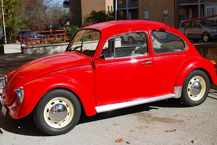 PANORAMISCH/VOORWAARDEN Deze Volkswagen Maggiolino 1200 heeft een volledige restauratie ondergaan. Carrosserie en verf in uitstekende staat, geen zichtbare krassen of deuken, rubbers volledig vervangen, geen roest aanwezig. Remmen als nieuw: rempomp vervangen, rubberen leidingen, cilinder en voor- en achterremkabels vervangen. Koppeling als nieuw: volledige koppeling vervangen inclusief drukgroep. Verlaagd wielnaafsysteem voor een verlaagde instelling van ongeveer 6 cm, revertibel met originele bouten die ik lever. Volledige onderhoudsbeurt uitgevoerd met vervanging van motorolie, versnellingsbakolie, bougies, bougiekabels, oliefilter, benzinefilter, luchtfilter, volledige benzinetubering in koper die door de carrosserie loopt, benzinetank en tankfilter. Beschikbare facturen van de gekochte onderdelen. Interieurafwerkingen voltooid met nieuwe bekleding en tapijt. Nieuwe hemelbekleding Werkende radio uit die tijd. Het is alleen nog nodig om enkele kleine afwerkingen te voltooien, zoals de stuurwielmoer (reparatieset al in mijn bezit) en de bekleding van de achterruit (zoals te zien op de foto). Auto klaar voor dagelijks gebruik. documentatie Een set Italiaanse documenten. Auto zichtbaar in Campobasso, Italiƫ.