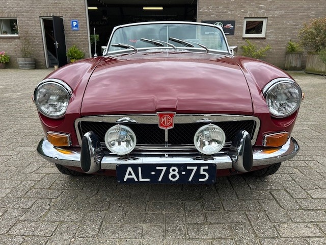 Mooie MGB chromebumper uit 1972 in damask red.  Dit is een oerdegelijke, zeer goed onderhouden rijdersauto. De auto verkeert in een zeer goede algehele staat, een roestvrij exemplaar. Het plaatwerk, het lakwerk en de naden zijn in goede staat. De techniek van de auto is uitstekend, hij is uitgerust met een roestvrijstalen sportuitlaat, elektronische 123 ontsteking, K&N sportluchtfilters. Alle ophangingsdelen, rubbers, en koelslangen zijn zojuist vernieuwd. De 1800-motor is ongelooflijk soepel, de versnellingsbak schakelt fabrieksnieuw. Het interieur is zeer netjes, de stoelen zijn bekleed met zwart vinyl, de softtop is gloednieuw zwart vinyl en de vinyl hoodcoher  verbergt het opgevouwen kapframe! Het dashboard werkt allemaal uitstekend, alle meters zijn netjes en werken naar behoren. Rostyle stalen velgen zijn de enige periodecorrecte wielen op deze auto, prachtig. Het chroomwerk is in zeer goede staat. De auto is voorzien van een oliekoeler en een aluminium kleppendeksel.! Aan de voorzijde is een nieuwe grille gemonteerd en 2 sportieve verstralers, hij ziet er prachtig uit.