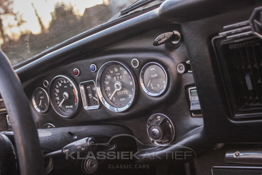 Het interieur is ook in uitzonderlijk goede conditie. De interieurbekleding is nog volledig origineel en in prima conditie. De skailederen stoelbekleding is in goede conditie, op een paar slijtage plekken na, en de stoelen zitten bijzonder comfortabel. Het dashboard is ook in zeer goede conditie en bijzonder mooi om te zien. Deze MGB is van 1973 en daarom ook voorzien van een dashboardkastje. Het zwarte stuurwiel is nog volledig origineel en in zeer goede staat. Dit geldt ook voor de deurpanelen en de verschillende chroom- en sierdelen in deze stijlvolle roadster.