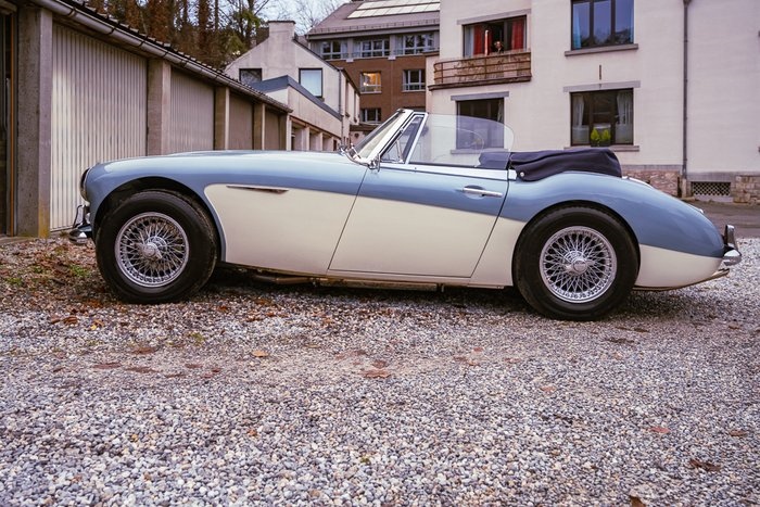 Algemeenheden Het voertuig komt uit de Verenigde Staten en heeft een gedeeltelijk bekende geschiedenis. Het registratiedocument van de laatste Amerikaanse eigenaar is beschikbaar, evenals een officieel certificaat van de B.M.H.T. De restauratie, uitgevoerd tussen 2013 en 2019, is grondig gedaan en omvat zowel het chassis als de mechaniek, de carrosserie en het interieur. Carrosserie en verf De carrosserie is grondig voorbereid en beschermd. Er is een geheel nieuwe tweekleurige verflaag aangebracht, na meerdere beschermende lagen. Om elke corrosieoverdracht tussen de materialen te voorkomen, is er een anti-roestbescherming aangebracht tussen de voor- en achtervleugels van aluminium en het centrale deel van staal. De voor- en achterlichten zijn gerestaureerd of vervangen. Tegenwoordig vertoont het geheel een zeer verzorgde visuele staat, met een nette, gezonde en duurzame afwerking. techniek Het chassis is volledig opnieuw opgebouwd en beschermd met een Epoxy-verf. De motor is volledig herzien: zuigers, zuigerveren, balans van de krukas, gevlakte cilinderkop, nieuwe kleppen, enzovoort. De twee SU HD8 carburateurs zijn volledig gedemonteerd, gerestaureerd en voorzien van nieuwe onderdelen. De versnellingsbak is gereviseerd, de koelradiator is nieuw, en de tank is vervangen door een aluminium model. De voor- en achterremmen zijn gerestaureerd, en de achterophangingsveren zijn vervangen. Verschillende discrete maar effectieve verbeteringen zijn aangebracht: Bilstein-ophanging (AV/ARR), elektronische ontsteking, extra elektrische ventilator Revotec en remservo. Het voertuig verkeert in een uitstekende mechanische staat, is betrouwbaar en klaar om te rijden. INTERIEUR Het interieur is volledig gerenoveerd. De bekleding van het dashboard, de stoelen, de deurpanelen en het hele achtergedeelte is nieuw. De tapijten zijn ook vervangen. Het geheel biedt een frisse, schone en elegante sfeer, passend bij een volledige kwaliteitsvolle restauratie. Documenten De auto wordt geleverd met: – het certificaat B.M.H.T. Het registratiebewijs van de laatste Amerikaanse eigenaar. zoals de elementen die de consistentie van zijn geschiedenis en restauratie bevestigen. Verwijdering Er kan hulp worden geboden bij het organiseren van het vervoer in Frankrijk en Europa. Mogelijkheid tot het in contact brengen met gespecialiseerde vervoerders. ANDERE INFORMATIE Deze volledige restauratie, uitgevoerd over meerdere jaren, combineert respect voor de authenticiteit met verstandige technische verbeteringen. Een unieke kans voor een verzamelaar die op zoek is naar een grondig gerestaureerd, betrouwbaar, verfijnd exemplaar dat direct gewaardeerd kan worden.