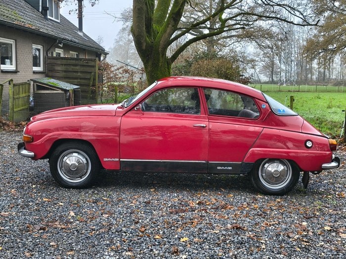 NO RESERVE PRICE, DEZE LEUKE SAAB 96 V4 WORDT DUS SOWIESO VERKOCHT ! Leuke en originele Saab 96 in 1973 nieuw in Nederland geleverd. En met originele V4 (65 pk, 1.5 liter) motor, handgeschakelde 4 versnellingspook, stuurschakeling en met vrijloop! In originele kleur (Saab code R2B met veel uitstraling! Documenten: De auto heeft een Nederlandse registratie. De auto wordt naar wens ( tegen meerprijs van 50 euro) met geldige EU export papieren afgeleverd, zodat een eventuele buitenlandse nieuwe eigenaar de Saab gemakkelijk in zijn / haar land kan registreren. Vanwege zijn leeftijd (52 jaar) is de Saab wegenbelastingvrij, en ook APK vrijgesteld. Carrosserie: De auto verkeert in redelijke gebruiksstaat, natuurlijk zijn er enkele roestplekjes die t.z.t. eens aangepakt zouden kunnen worden. De onderzijde van de deuren is met een kunststoflaag afgewerkt. De onderzijde van de carrosserie is behoorlijk netjes, maar niet perfect. Technisch: Iedere Saab 96 heeft een vierversnellingsbak met stuurschakeling, deze natuurlijk ook, en werkt erg prettig. Bijzonder detail van deze eigenzinnige Saab is, dat je de auto in de achteruit versnelling moet zetten, om de contactsleutel te kunnen verwijderen. De V4 motor draait prima, start vlot, en heeft natuurlijk een bijzonder geluid. Leuk detail is overigens dat de Saab nog de originele V4 motor heeft, die toen werd ingekocht van Ford. Op enkele details zie je nog de originele Ford logo's. Zeer bijzonder, en volledig origineel! De auto is behoorlijk goed rijdbaar, aandachtspuntje is dat de koppeling bij het volledig intrappen van het pedaal hoorbaar is. Dit hoeft trouwens ook niet geheel te gebeuren, de auto schakelt zichzelf vrij. De automatische vrijloop werkt prima, kan naar wens van binnen worden ingeschakeld en uitgeschakeld. Dit is een origineel item, dat nog uit de tijd van de tweetakt Saab motoren stamt en door het eigenwijze en eigenzinnige SAAB nooit is verwijderd. Al met al , een zeer bijzondere auto. de verkoper heeft veel contacten in binnen- en buitenland en kan u helpen wanneer nodig om NOS en gebruikte onderdelen te vinden. Interieur: In het interieur enkele imperfecties, zie de fotos voor de binnenkant en buitenkant. De rugleuning van de bestuurdersstoel is beschadigd, de rest van het interieur ziet er overigens redelijk netjes uit. Transport: De auto staat in Hengevelde, Nederland en kan hier vanzelfsprekend worden opgehaald. De auto kan tegen meerprijs van 150 euro (excl BTW) in Nederland worden bezorgd (excl. De Waddeneilanden) Voor de buitenlandse bieders : Bezorging/transport: Verkoper kan de auto relatief goedkoop in de hele EU laten bezorgen door een professionele transporteur. Vanzelfsprekend kan tijdens en na de veiling een aanvraag voor de transportkosten worden ingediend, vraag het Catawiki.