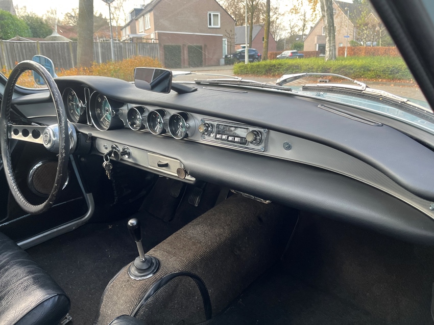 Het betreft hier een hele mooie en originele auto. Afkomstig van de eerste eigenaar in Beveryhills california.Alle documenten vanaf de aflevering in 1966 zijn nog aanwezig. De auto is nooit gerestaureerd, dat wil zeggen dat er met name aan de carrosserie nooit is gelast of stukken vervangen. wel is hij in de tachtiger jaren een keer herspoten vanwege zonneschade aan het lakwerk.Bij aankomst in Eindhoven hebben we de auto eerst grondig nagekeken en technisch weer helemaal up to date gebracht. Met name remslangen, brandstof slangen raamrubbers zijn door ons vervangen vanwege verdroging door de jaren heen. Na een technische controle bij de RDW is er een NL kenteken op afgegeven.Het interieur van de auto is nog vrijwel origineel en nog erg netjes. Een byzondere verschijning met een mooie geschiedenis erbij.