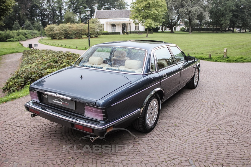 Deze Daimler XJ6 is een bijzonder stijlvolle verschijning en dat komt niet alleen door de schitterende kleurencombinatie. Deze luxueuze saloon is niet alleen zeer mooi om te zien, maar ook om mee te rijden. En wat ook bijzonder is: Deze oorspronkelijk in Zwitserland nieuw geleverde Daimler heeft nog maar 90.000 originele kilometers op de teller staan! Dat maakt deze schitterende donkerblauw metallic Daimler extra uniek en aantrekkelijk.