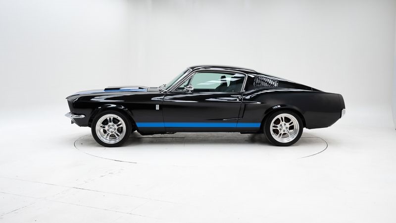Merk: Ford Model: Mustang Fastback V8 Bouwjaar: 1968 Motor: 4.948 cc V8 Transmissie: Manuele 5-versnellingsbak Kleur: Black – Blue Kilometerstand: 52.258 (afgelezen) Chassisnummer: 8R02J125273 Stuurpositie: Links gestuurd Documenten: Belgische inschrijvingsbewijzen