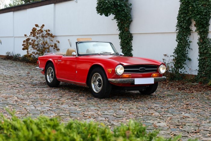 ALGEMEEN: Deze Triumph TR6 onderging in 2017 een uitgebreide professionele restauratie en verkeert sindsdien in uitstekende staat. Afgewerkt in Classic Pimento Red, wordt hij geleverd met het zeldzame bijpassende vaste dak en een softtop in beige. De auto is recentelijk onderhouden in oktober 2025 en is volledig klaar voor direct gebruik. Hij is uitgerust met elektronische ontsteking, een nieuwe dynamo en gerenoveerde bedrading, evenals een nieuw kleppendeksel met pakking en een nieuwe carburateurkap. De motor trekt krachtig, de auto is betrouwbaar en klaar om meteen van te genieten. Carrosserie en lakwerk: Het carrosserie is in 2017 volledig gerestaureerd en verkeert tot op heden in zeer goede staat. De lak ziet er uitstekend uit, met slechts enkele kleine imperfecties die zichtbaar zijn in de galerij. De passing van de panelen is uitstekend en alle deuren, motorkap en koffer openen en sluiten soepel. De vloer is volledig roestvrij en is behandeld met hoogwaardige anti-corrosiebescherming, waardoor de auto een solide en goed bewaarde uitstraling heeft. { Mechanisch gezien verkeert deze TR6 in uitstekende staat. De motor levert volle kracht, de remmen werken krachtig en voorspelbaar, en zowel de vering als de gewenste 4-versnellingsbak functioneren precies zoals ze behoren. Recent technisch werk omvat elektronische ontsteking, een nieuwe dynamo, vernieuwde bedrading, een nieuw kleppendeksel en pakking, en een nieuwe carburateurkap. De auto kreeg in maart 2025 een oliewissel en in oktober 2025 een volledige service, waardoor verdere aandacht niet nodig is. INTERIEUR: Het interieur is volledig gerenoveerd tijdens de restauratie in 2017 en verkeert nog steeds in uitstekende staat. Het beschikt over opnieuw beklede bruin lederen bekleding met geüpgradede hoge rugleuning stoelen met hoofdsteunen. De zwarte tapijten in de cabine en kofferbak zijn ook in zeer goede staat. De cabine oogt overal schoon en heeft verder niets nodig. Documenten: De TR6 werd oorspronkelijk geleverd in Frankrijk en wordt nog steeds geleverd met de originele Franse registratiepapieren. De restauratie is uitgevoerd in Frankrijk voordat de auto werd gekocht bij ER Classics in Nederland en vervolgens geïmporteerd naar Polen. Recentelijk heeft de auto de Poolse technische keuring doorstaan. De auto wordt geleverd met twee sleutels, het bijpassende hardtop, softtop en soft-top cover, evenals de handleiding van de fabriek. Ophalen De auto is volledig klaar voor afhaling en kan direct worden gereden. Dankzij de recente onderhoudsbeurt en de geldige technische keuring kan de nieuwe eigenaar meteen de weg op zonder verdere voorbereiding. ANDERE INFORMATIE: Deze Triumph TR6 is een zeer goed onderhouden exemplaar, dat profiteert van een grondige restauratie, een zeldzame kleur en topcombinatie, en uitstekende mechanische staat. Met zijn Franse herkomst, volledige documentatie, recente onderhoudsbeurten en de aanwezigheid van zowel hard- als softtops, valt hij op als een aantrekkelijke keuze voor liefhebbers en verzamelaars.