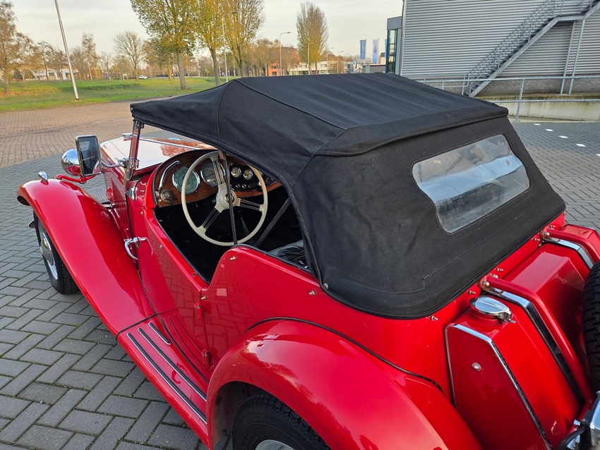 Zonder meer een zeer fraaie MG TD C in het rood voor zien van de originele Xpag 4 cilinder benzine motor.