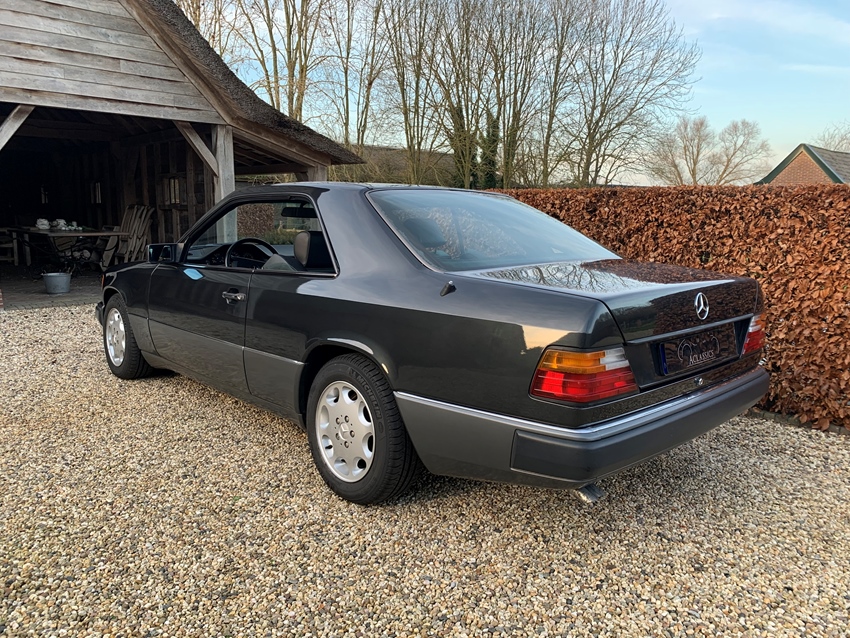 Een bijzonder fraaie Mercedes 300 CE uit een kleine privé verzameling van bouwjaar 1991. De Mercedes is perfect onderhouden en is zowel voor wat betreft carrosserie als techniek in uitstekende conditie. De W124 serie staat bekend als uiterst betrouwbaar en komst uit een periode waarin Mercedes Benz auto's bouwde alsof ze voor altijd meegingen. Met een 6 cylinder lijnmotor, een cylinderinhoud van 3000 cc en een vermogen van liefst 220PK is deze 300CE 24 klepper in staat tot dynamische prestaties. De motor is goed in balans en de schakeling gaat naadloos via de automatische transmissie. De buitenkant heeft een mooie laklaag met een kleur die perfect past bij deze auto. Aan alles is te zien dat de auto vele jaren is gekoesterd. Ondanks de leeftijd zou je kunnen zeggen dat de auto in nieuwstaat is. Het interieur, uiteraard van leder, vertoont nauwelijks sporen van gebruik. De bekleding is zo goed als nieuw wat niet alleen de kwaliteit van de gebruikte materialen weergeeft maar ook de manier van onderhoud door de vorige eigenaren. Onderhoud was altijd bij een in Mercedes gespecialiseerde garagist. Extra's die passen bij de tijd en luxe die Mercedes voorstond in die jaren zoals een groot origineel schuifdak, hoofdsteunen achter, zonwering voor de achterruit, centrale vergrendeling, warmte werend glas en een veiligheidsgordel die automatisch naar voren komt na het instappen. De APK van deze fraaie 24 klepper is geldig tot mei 2027. De auto is ruim gedocumenteerd met onder meer een origineel en compleet onderhoudsboekje. Wat deze Mercedes bovendien compleet maakt is de aanwezigheid van de originele Fahrzeugbrief, een zeldzaam detail dat de herkomst en authenticiteit bevestigd.